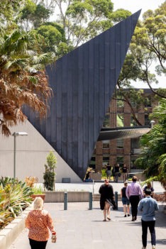 In a time of destruction and redaction of many brutalist buildings due to a lack of public understanding, a refurbishment which elevates the legibility of a building of this style is extremely salient. lahznimmo architects’ alterations and additions to the UNSW Sir John Clancy Auditorium do just that, contemporising the legibility of this typically difficult style by cracking open its shell to reveal a jewel-like centre.