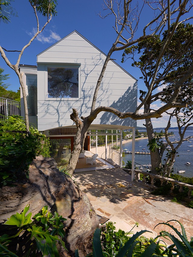 The eastern front frames views towards the headland, while screens provide privacy along the northern flank and frosted white glass allows light in but impedes views from the neighbouring apartment building.