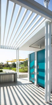 The careful design process began with a survey of Sydney’s amenities blocks, allowing the architects to expand upon the City of Sydney’s years of experience. Overcoming a five year design timeline, the building creates a playful addition to the park. The lightweight canopy structure ties together the various built elements and also integrates complex services for the surrounding park. The architects deploy clever touches of colour to enliven the building, red grout amplifies the white tiles while each toilet has its own pop of colour inside waiting to be discovered.