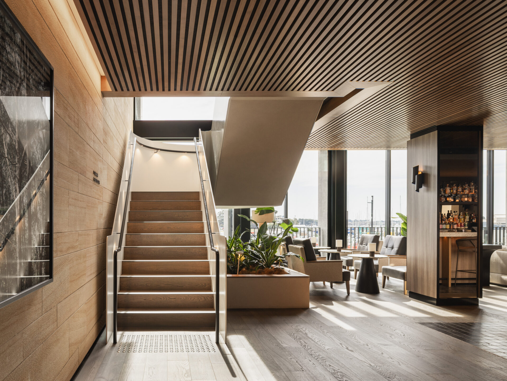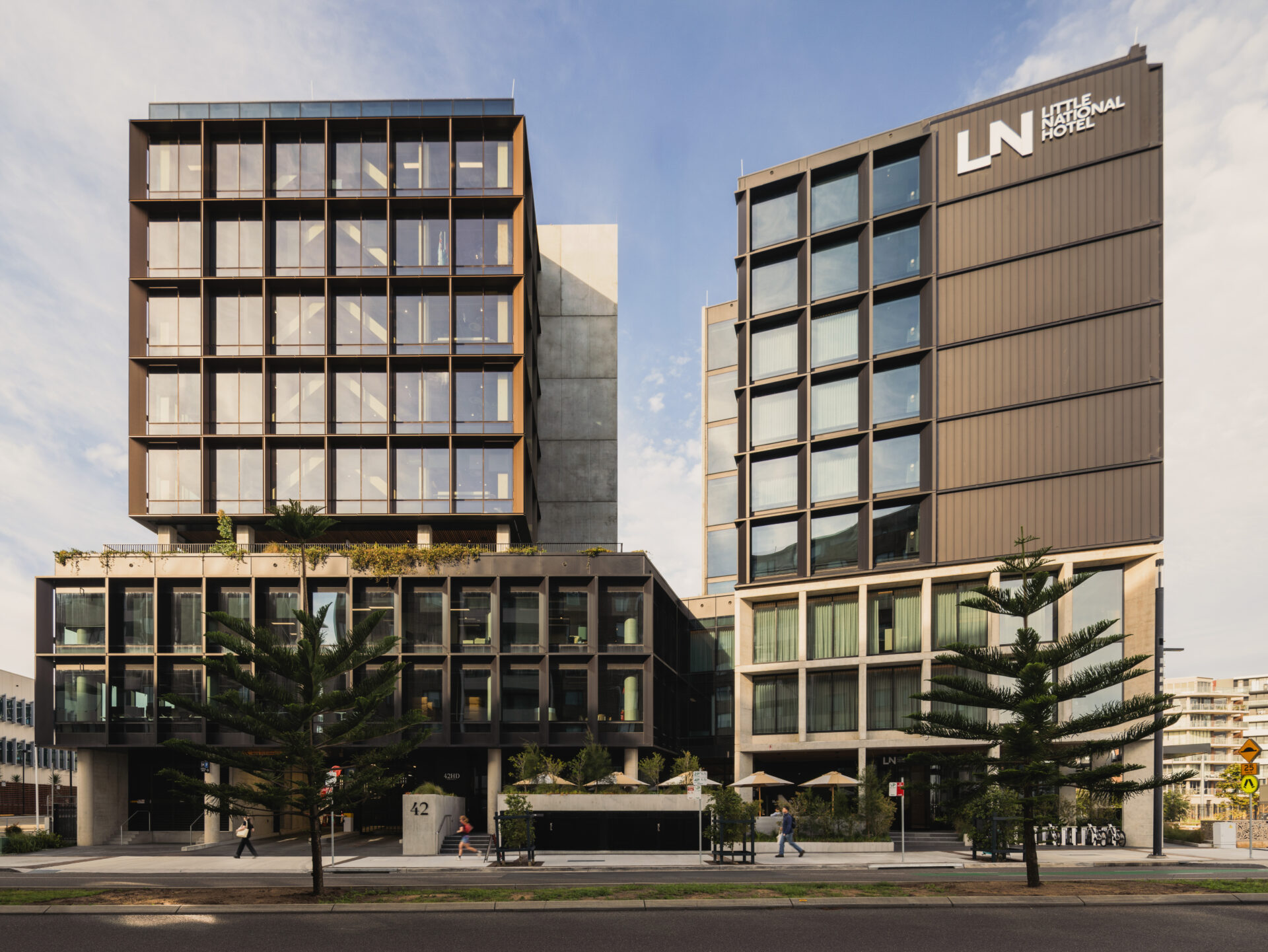 42 Honeysuckle Drive sets a new benchmark for mixed-use development in Newcastle, combining a Little National Hotel with a commercial office building constructed in CLT. Located on the Hunter River foreshore beside the city’s transport interchange, the project supports Newcastle’s urban renewal vision by activating the waterfront, public domain and emerging commercial precinct.