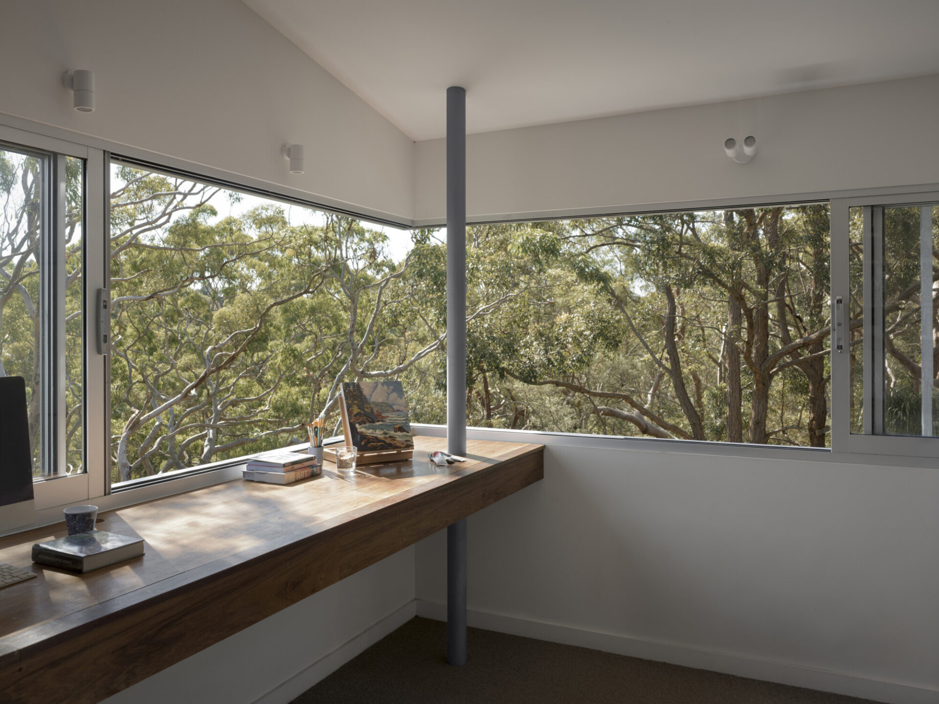 Our study and rear balcony sit within the tree canopy, providing shade, privacy and daily interaction with birdlife. Throughout the day we move easily between indoors, garden and pool.