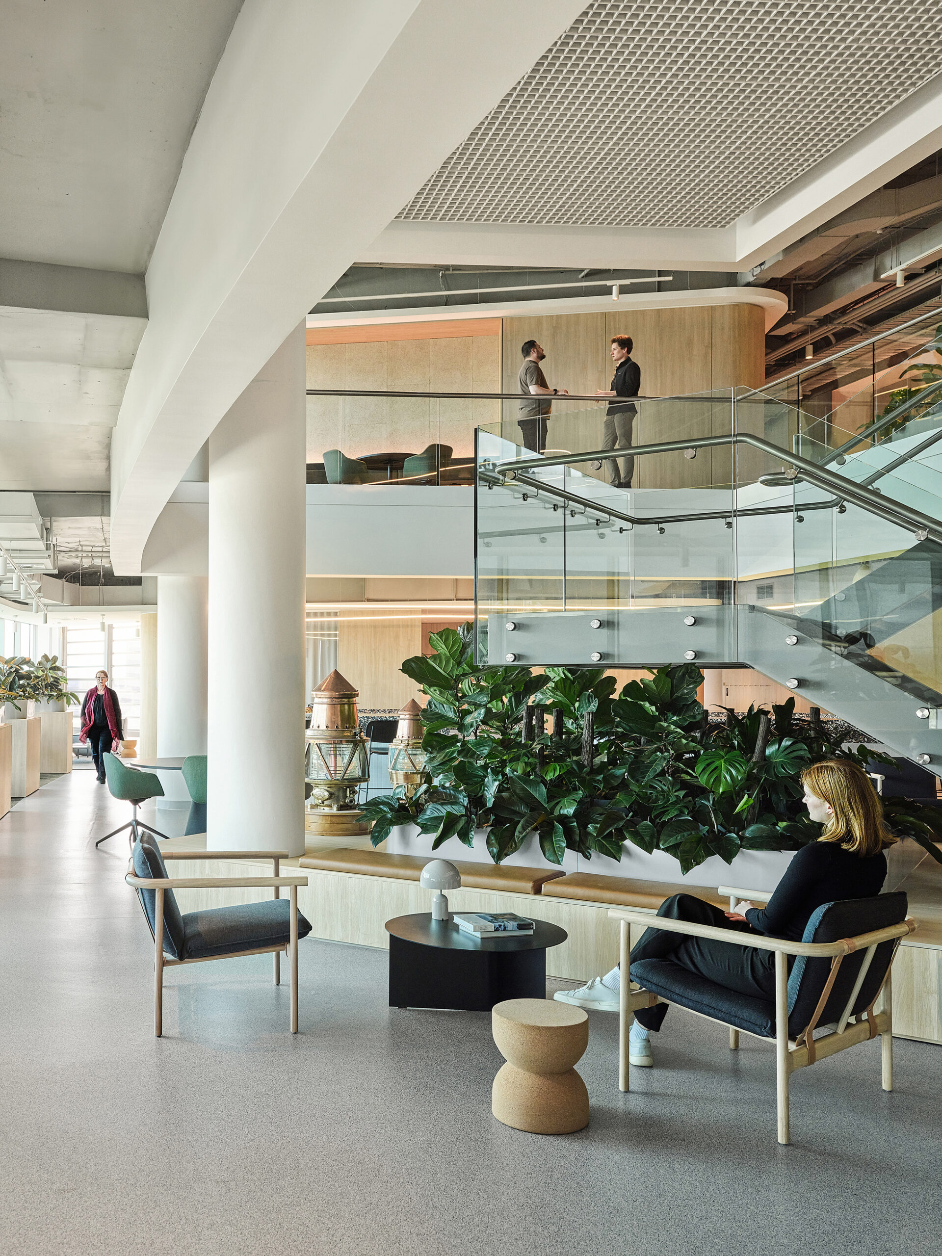 The design provides a variety of flexible spaces to work and connect, supporting meaningful collaboration between teams and stakeholders both virtually and in person, and providing the tools teams need to perform at their best. The spatial planning maximises access to natural light by arranging much of the built program around the building core with strategically placed rooms providing form to the internal landscape.