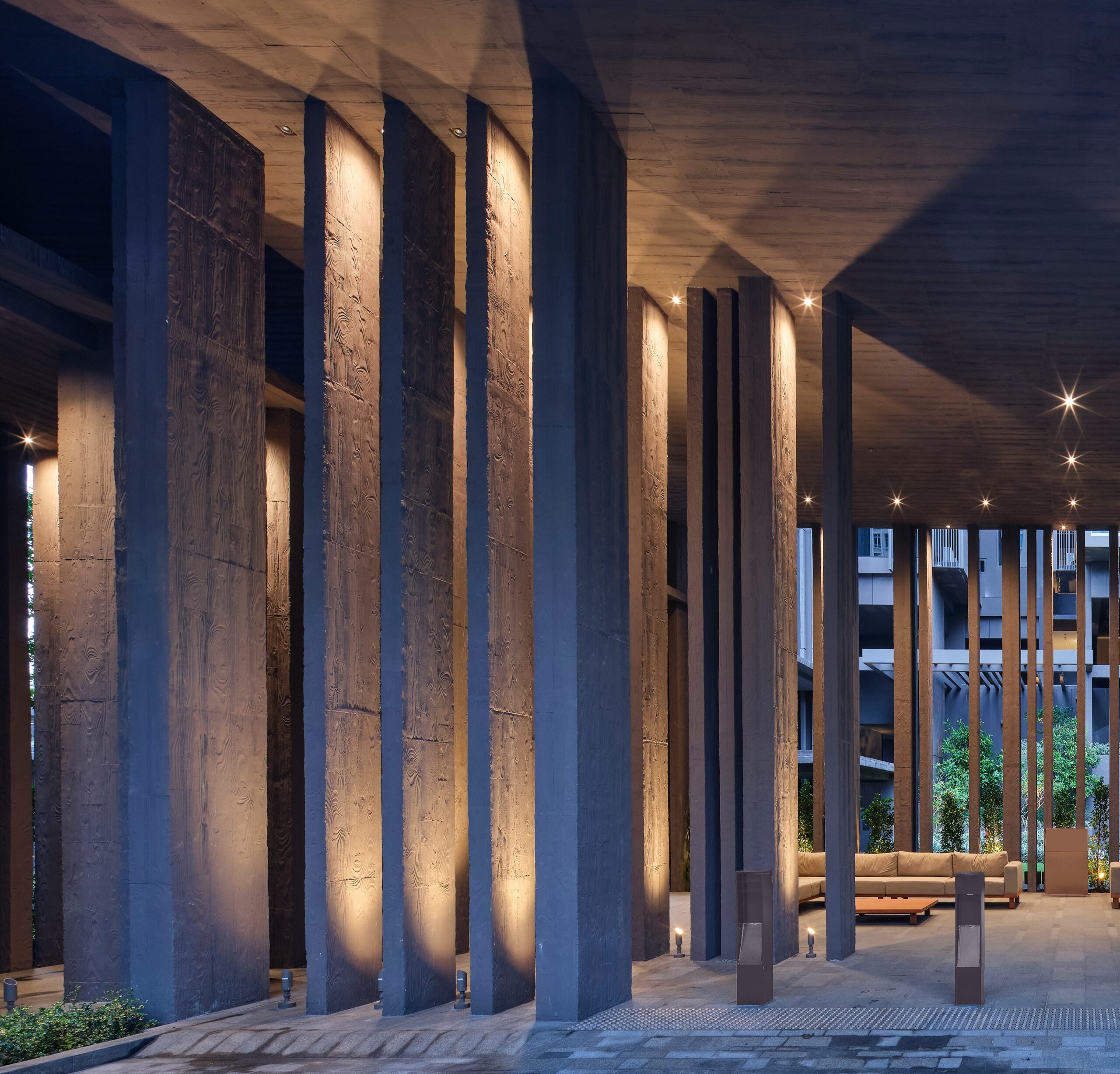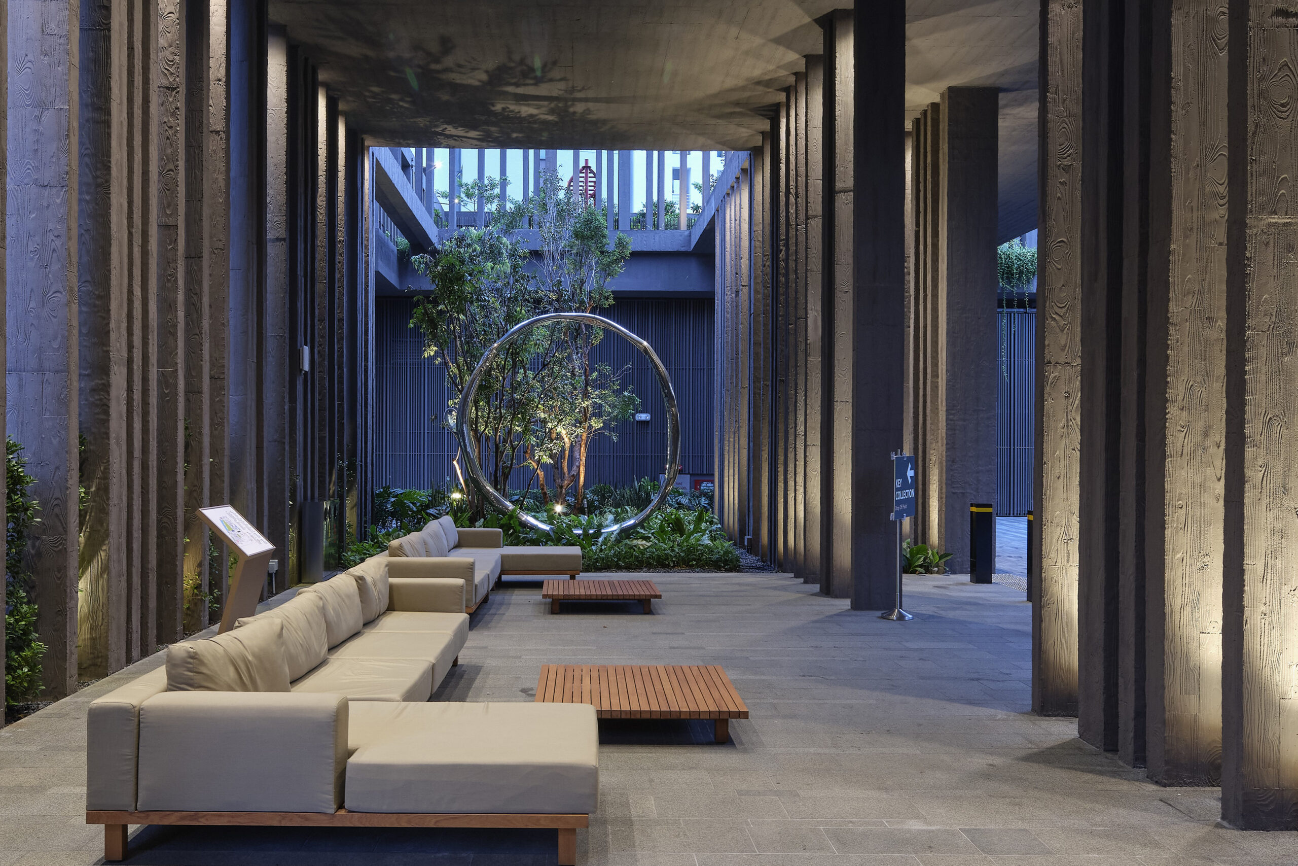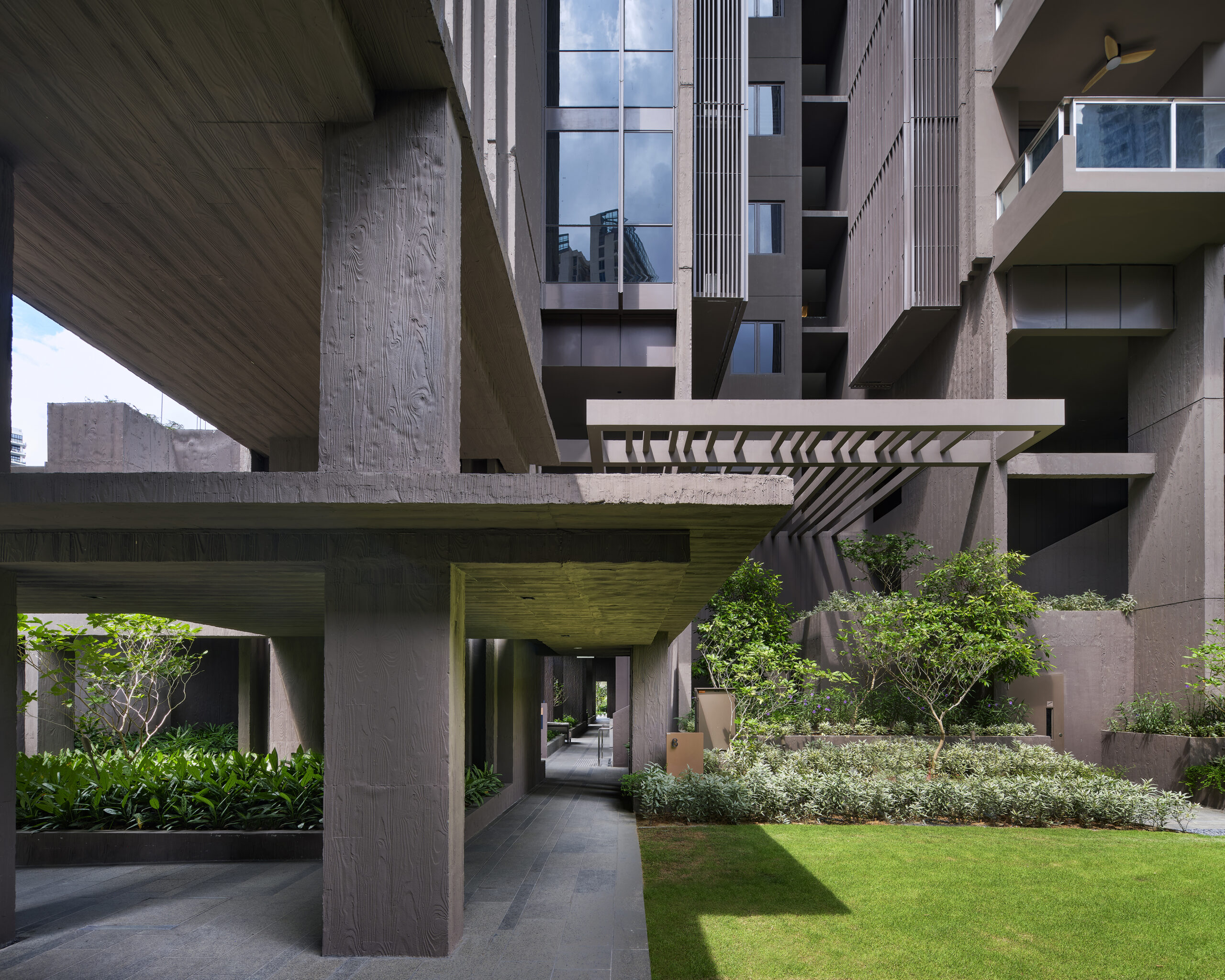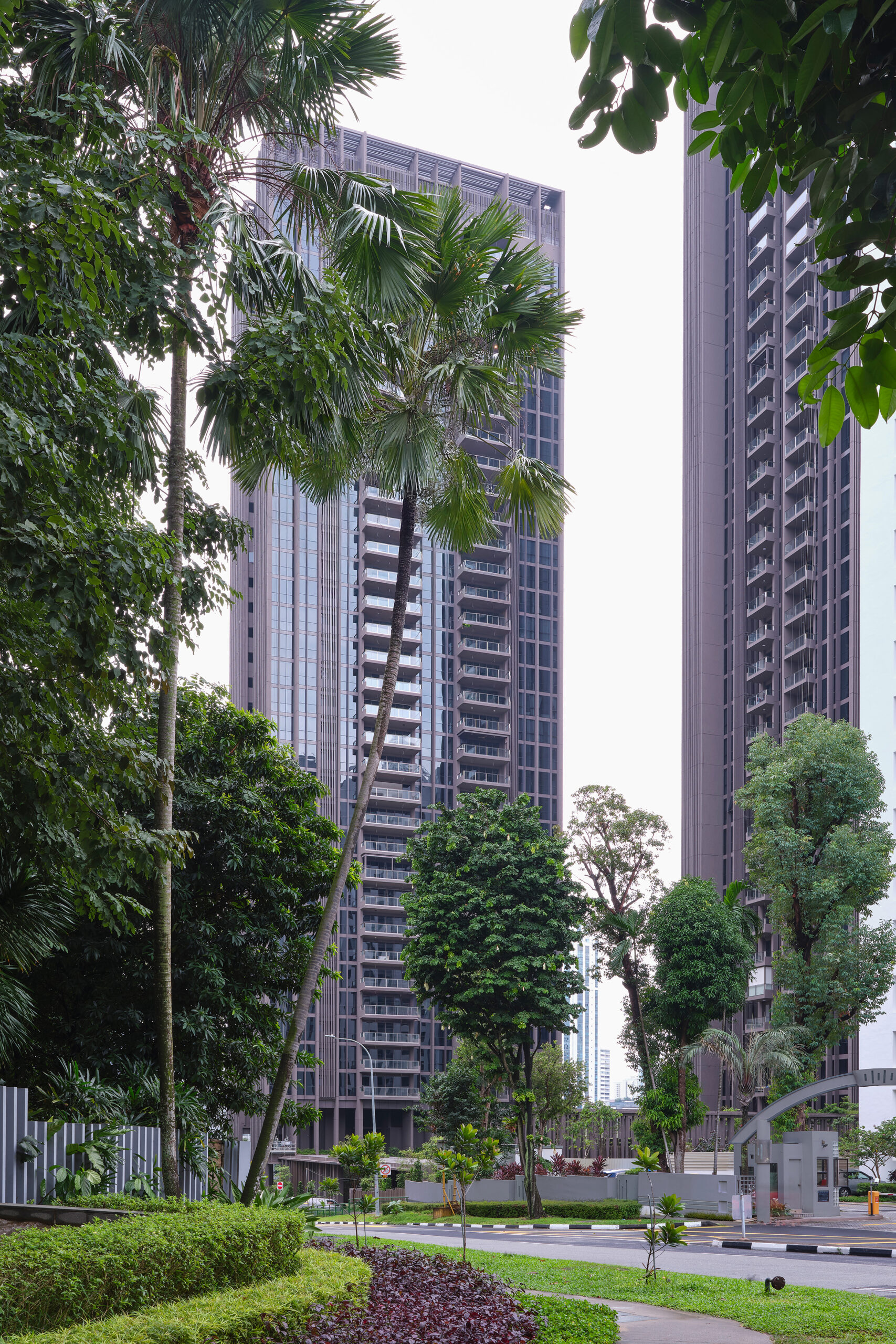 The Avenir, a high-rise residential development in central Singapore, anchors two high-rise towers within a sculpturesque design and landscape that responds to the city’s Garden City vision and tropical climate. The two towers are rooted in distinctive architectural landscape, with sculptural columns, blades and cantilevers creating a dramatic play of form, light and shadows at the lower level. At the upper level, this architectural expressionism disappears as the bare towers take their places in the dense high rise skyline of Singapore.