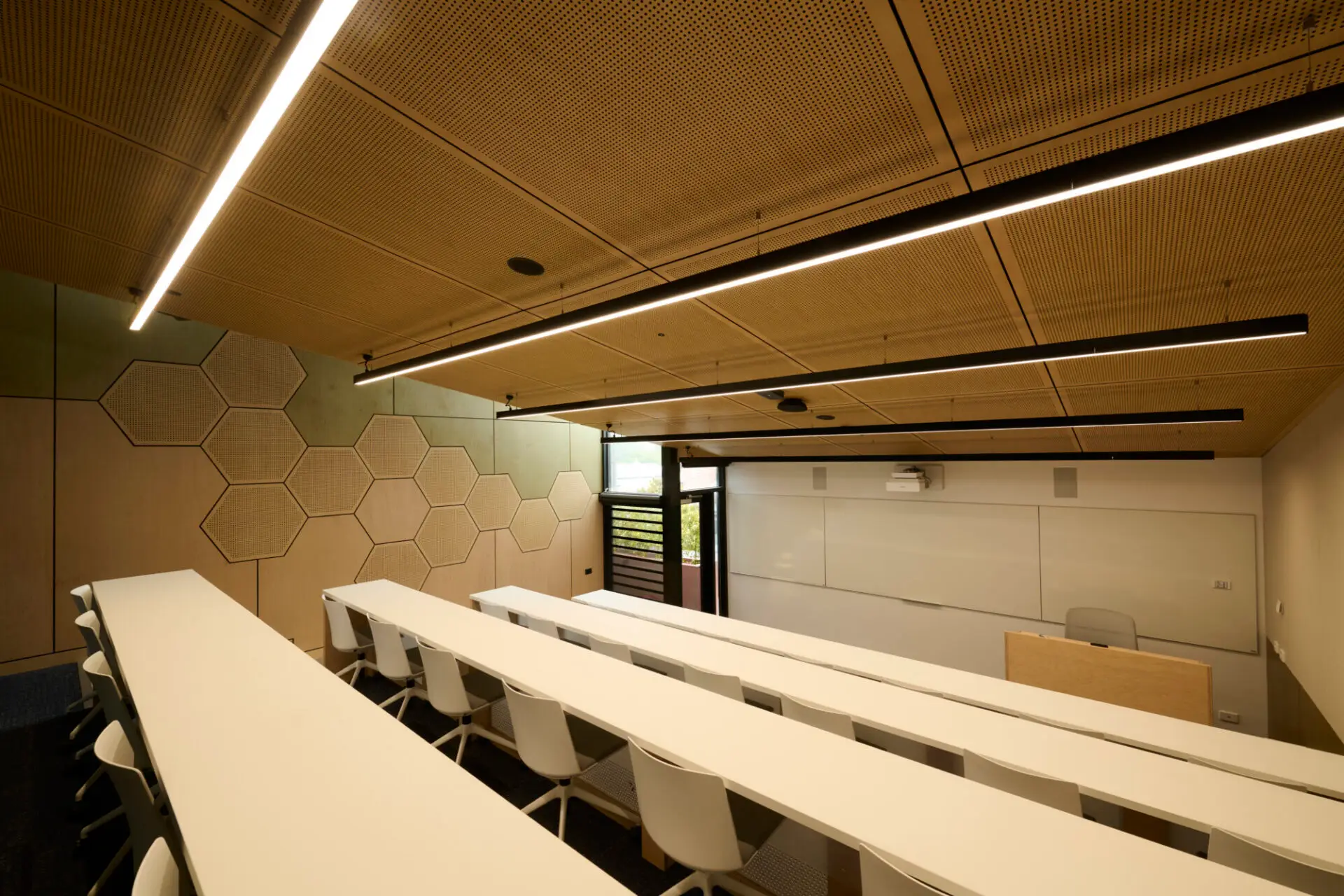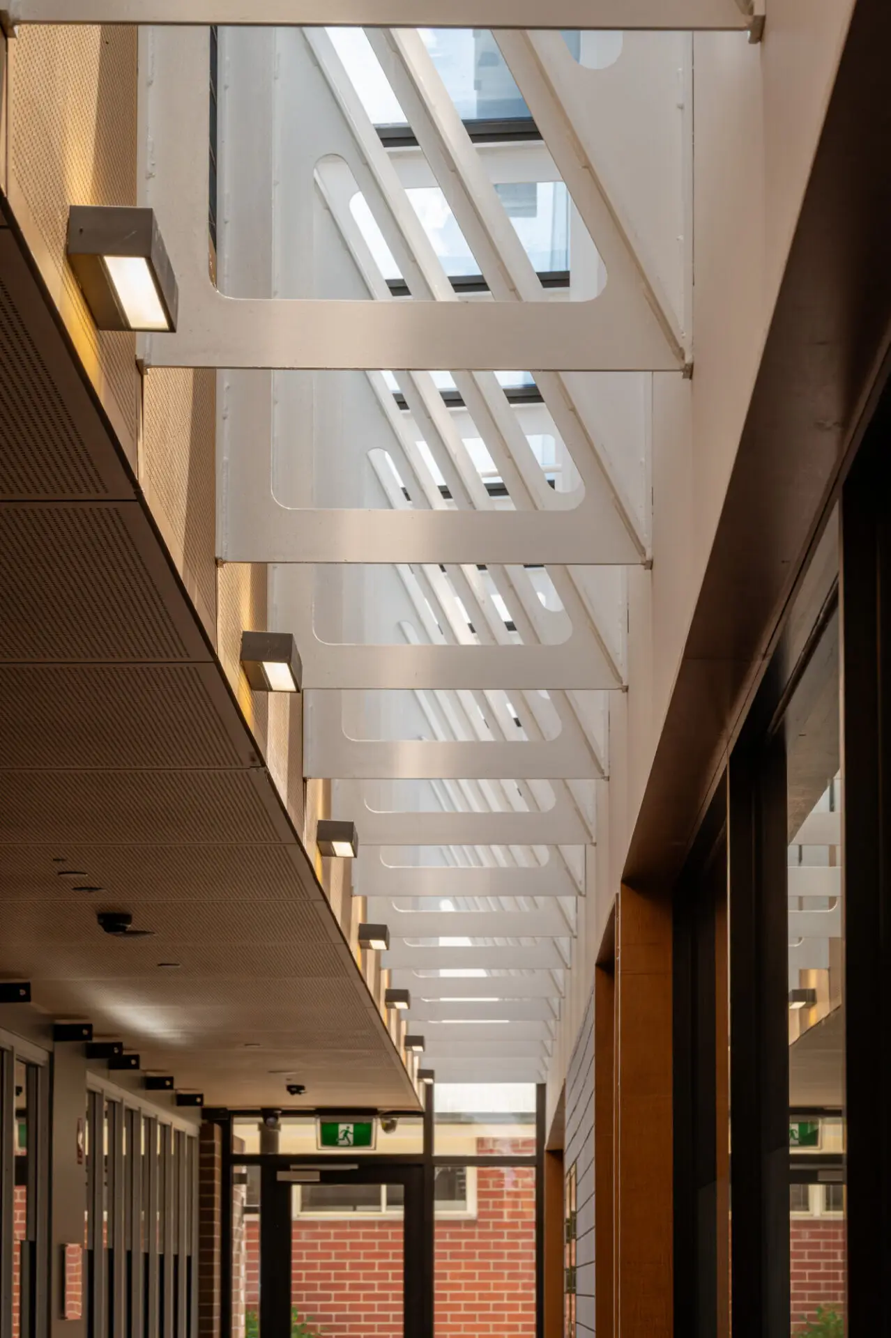 Via a two storey configuration for new science teaching and laboratory spaces in combination with elevated classroom extensions, the project achieves both spatial generosity and functional efficiency, allowing a constrained site to work harder for the school. The new facilities integrate seamlessly with existing circulation, delivering flexible classrooms, group teaching spaces, and student study areas that prioritise comfort, clarity, and wellbeing.