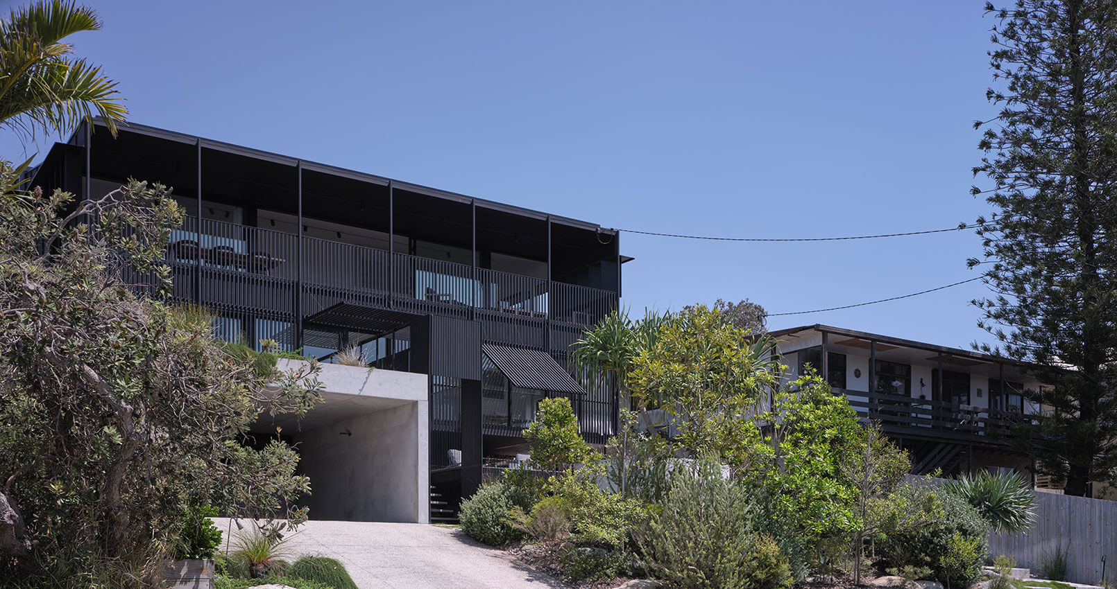 The principal structure adopts the language and rhythm of the neighbouring vernacular beach house.