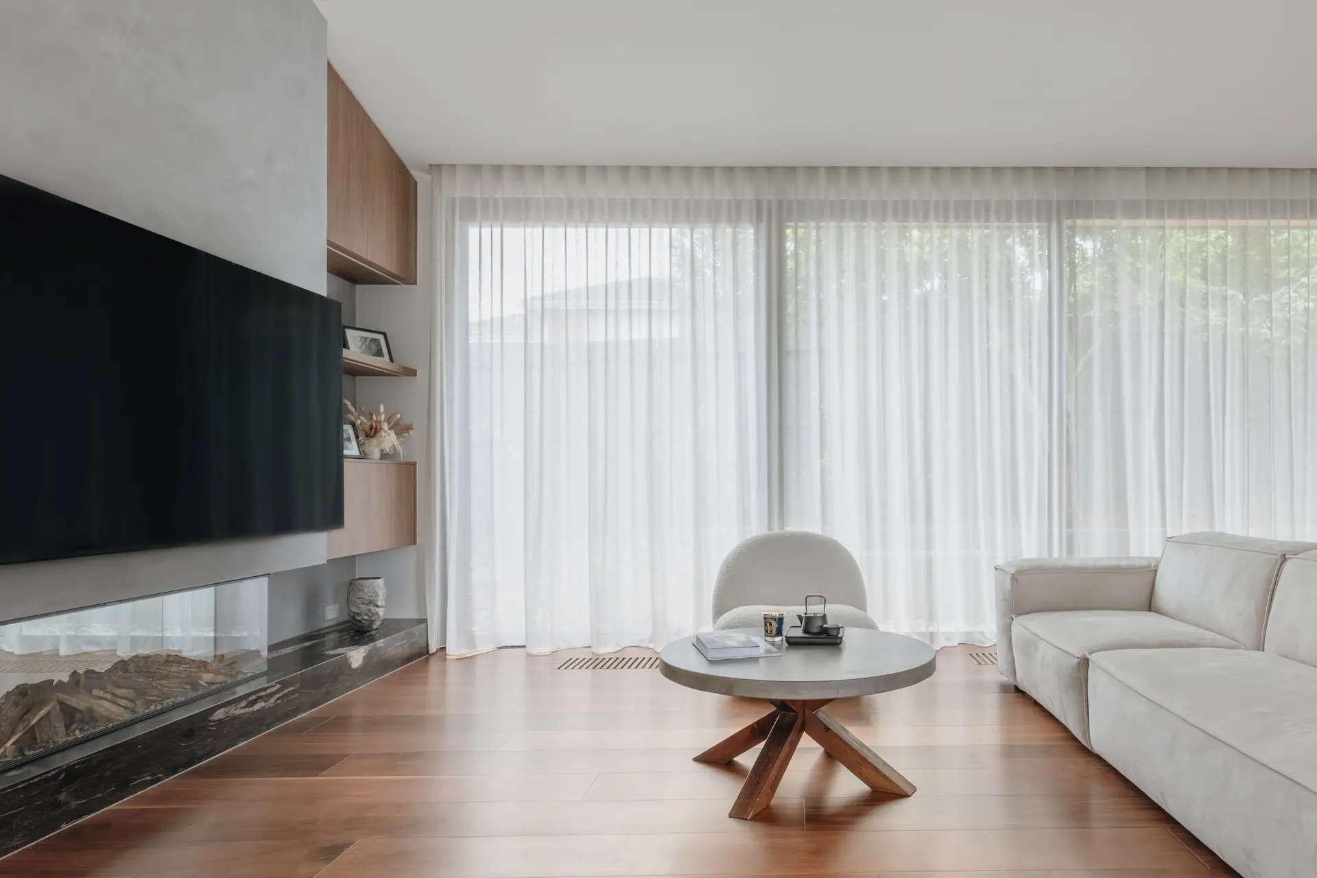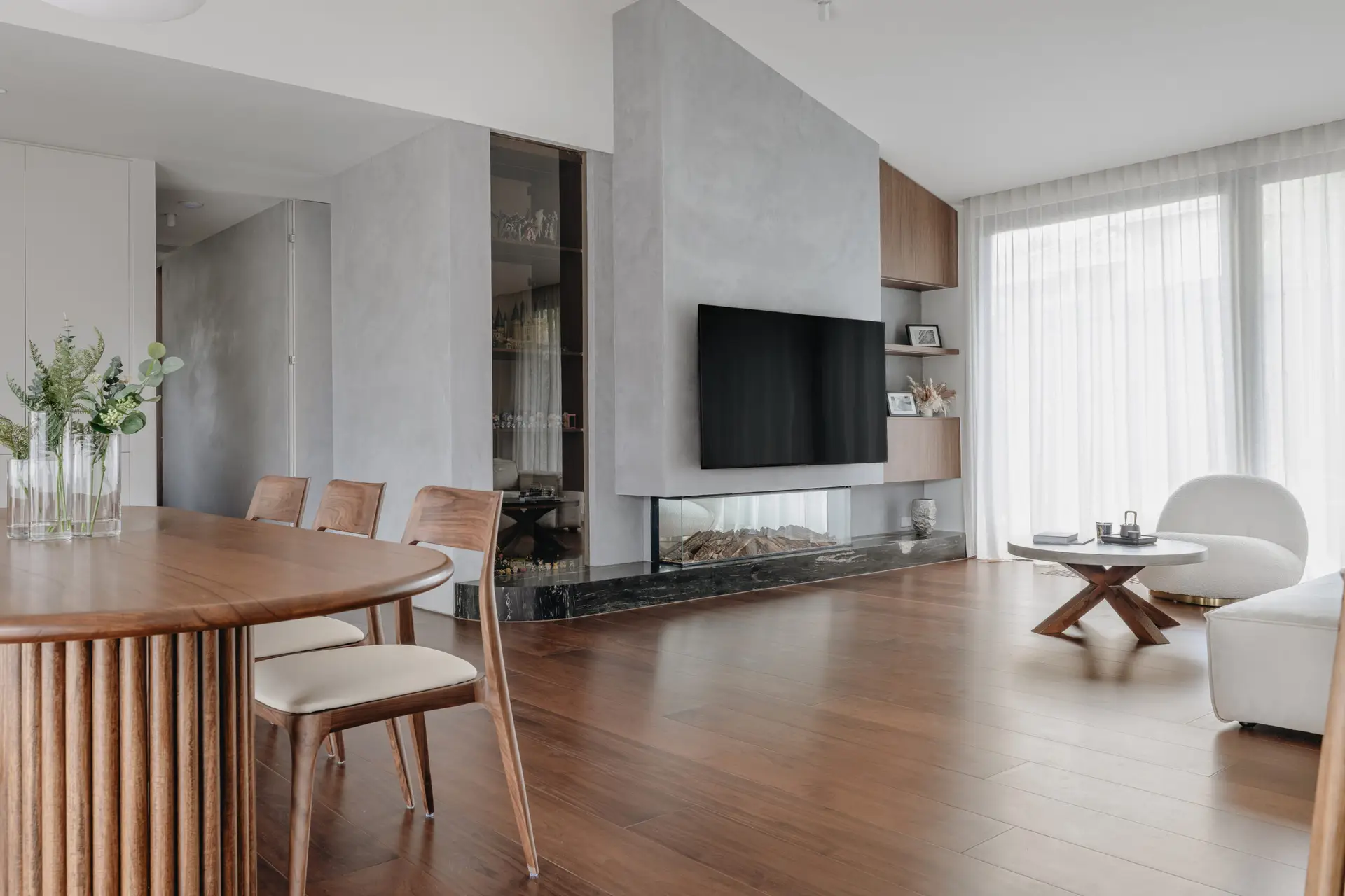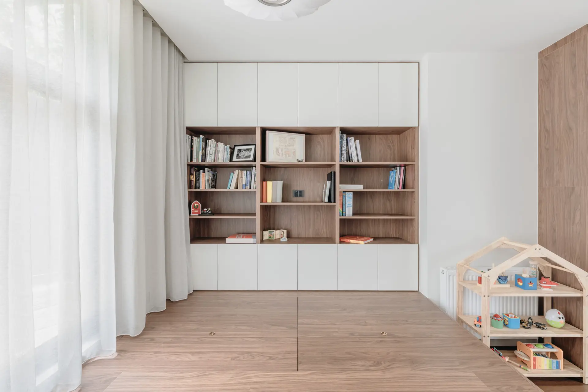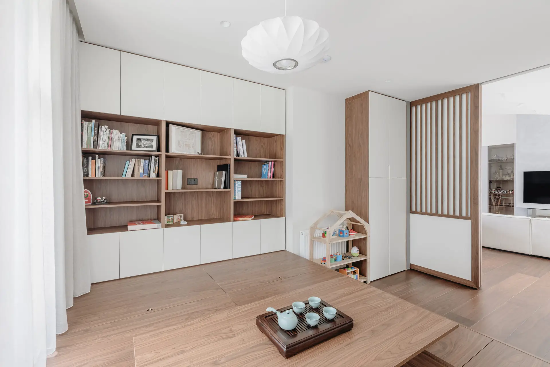 The interior design emphasises a neutral palette and multi-functionality, enabling the house to grow with the family’s evolving needs. The clever-designed multi-purpose room transforms effortlessly into a tea room, playroom, toy storage, family theatre, or guest bedroom, ensuring adaptability for various stages of family life. The main staircase also doubles as a playful communication hub, blending function with creativity.