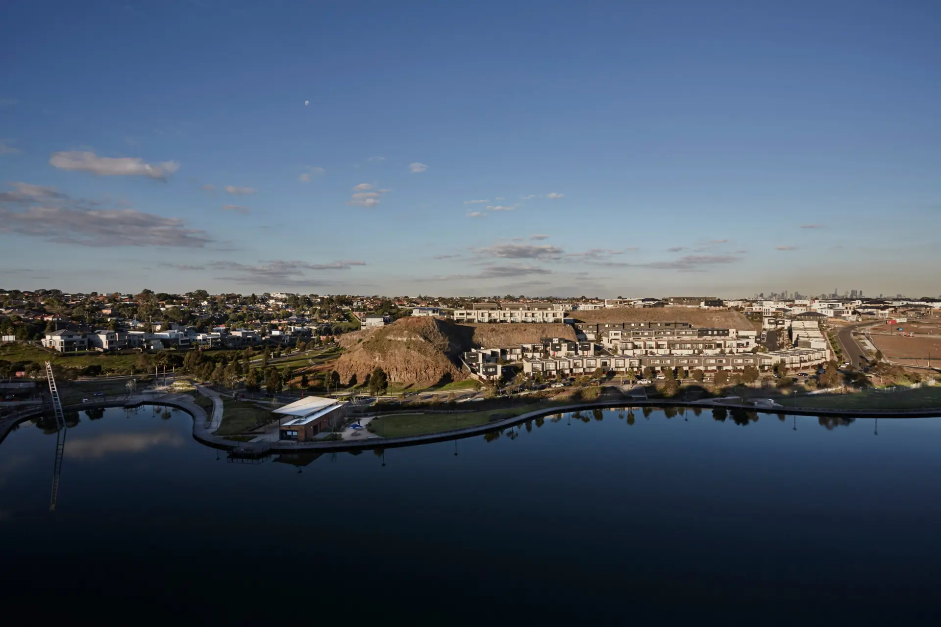 Canopi Valley Lake is a masterplan for 104 affordable townhouses around the unique and dramatic topography of Niddrie Lake on a two hectare hillside site, just 12km from the CBD. This former brownfield quarry site, saved by community protests and advocacy from becoming a semi-toxic dump, is now home to wetland sanctuaries, Steeles Creek, peregrine falcons, recreation and housing, that taps into existing established infrastructure.