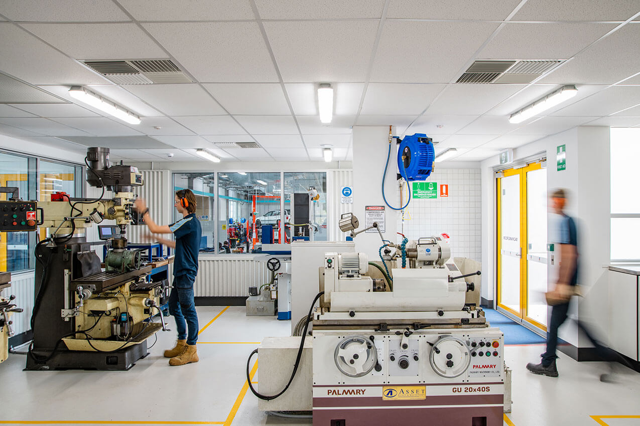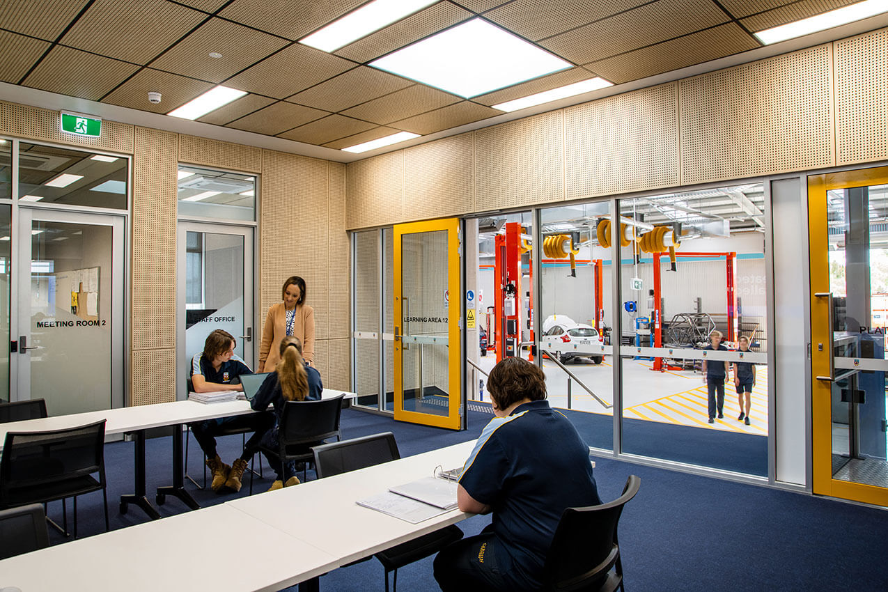 The new Automotive/Engineering workshop provides our school students and RTO apprentices with a state-of-the-art facility to learn their trade and develop their skills, providing ‘real world’ trade experience to prepare them when they transition to employment. It is equipped with the most up-to-date machinery to ensure that students are familiar with the tools they will be using on the worksite. The workshop provides a safe environment for all users, with industry-standard guarding on the machinery and clear and visible signage. It is aesthetically-pleasing and inviting with clear line of sight from our theory-based classrooms through to the practical workshop.