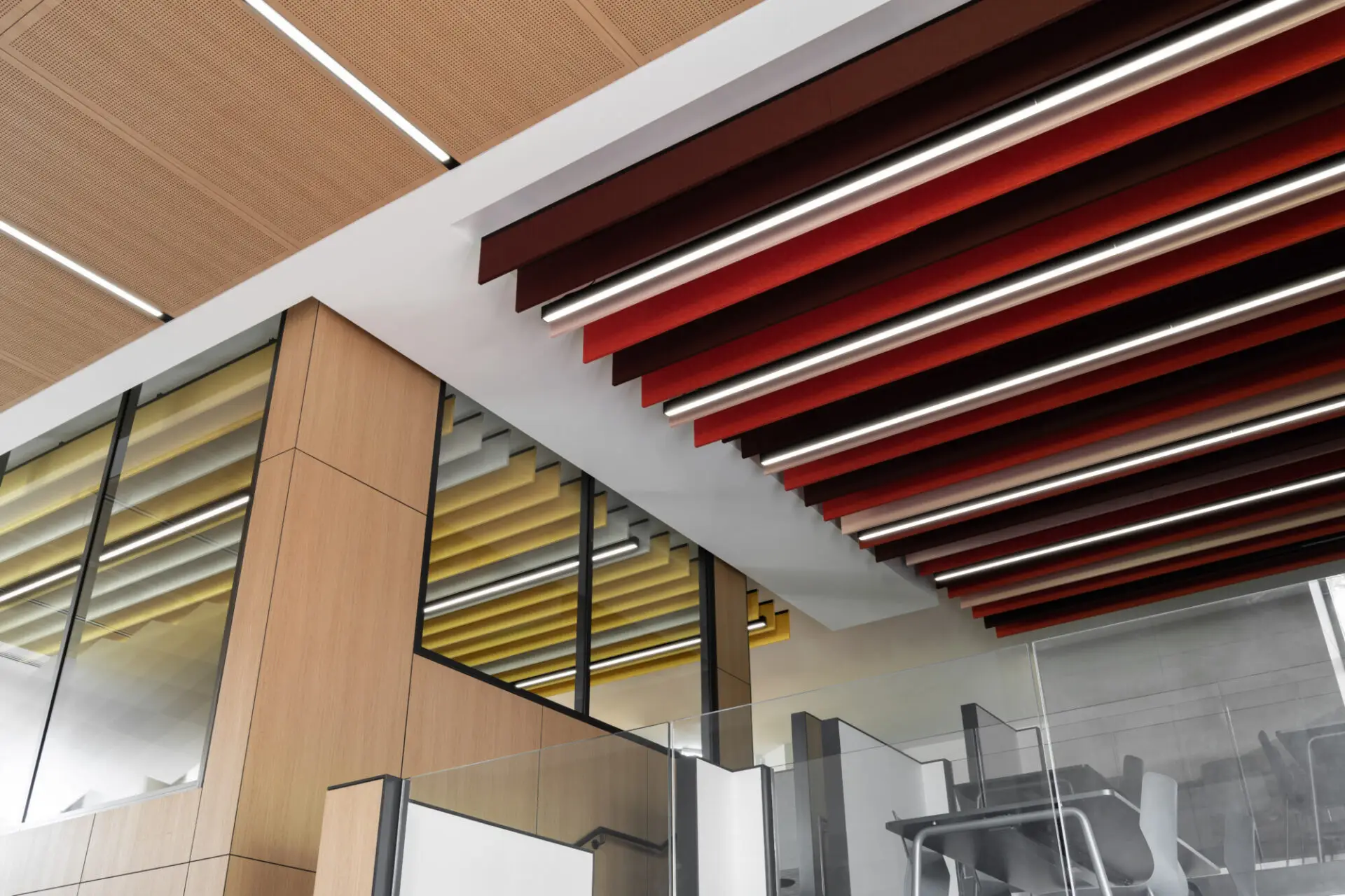 This new space establishes a language to encourage innovative teaching and learning more aligned with a tertiary facility to promote and inspire students as they progress on their journey towards higher education. The architecture responds through a dynamic reimagining of the existing function of a traditional lecture theatre, into a series of modern learning terraces, whilst externally the link bridge provides cues towards future external refreshment and upgrade to the traditional campus palette that is both bold but considerate of the existing context.