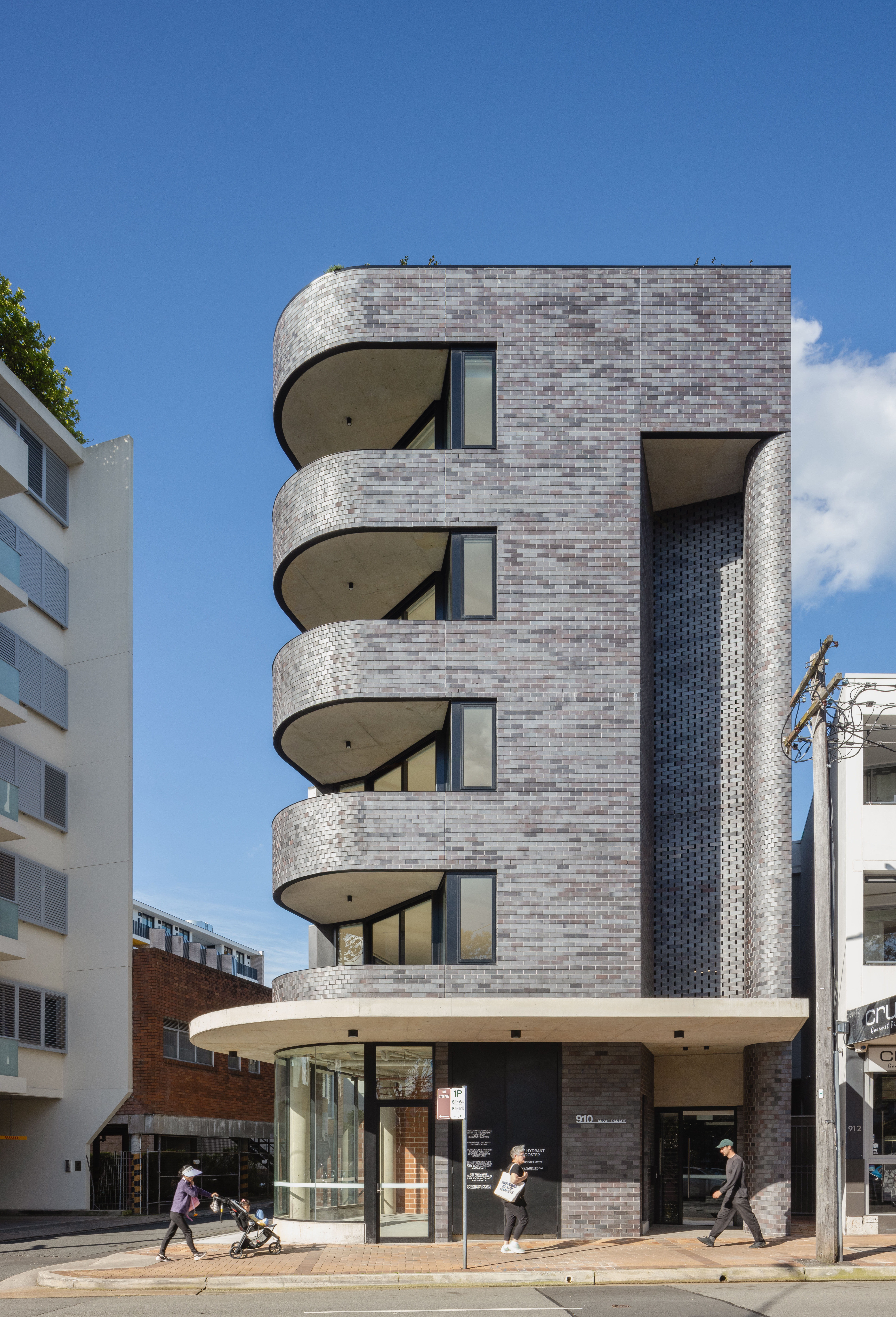 The Architects bold use of a mostly a single material and storng architectural form was a great interpretation of what once stood on the site. It felt nostagic to the art ‘decoish’ style but new and fresh. The plan and typology of the apartments mean great aentiy for all inhabitants and a very pratical and useful infil for a once under utilsed and diffcult site to appropriate to generate more housing.