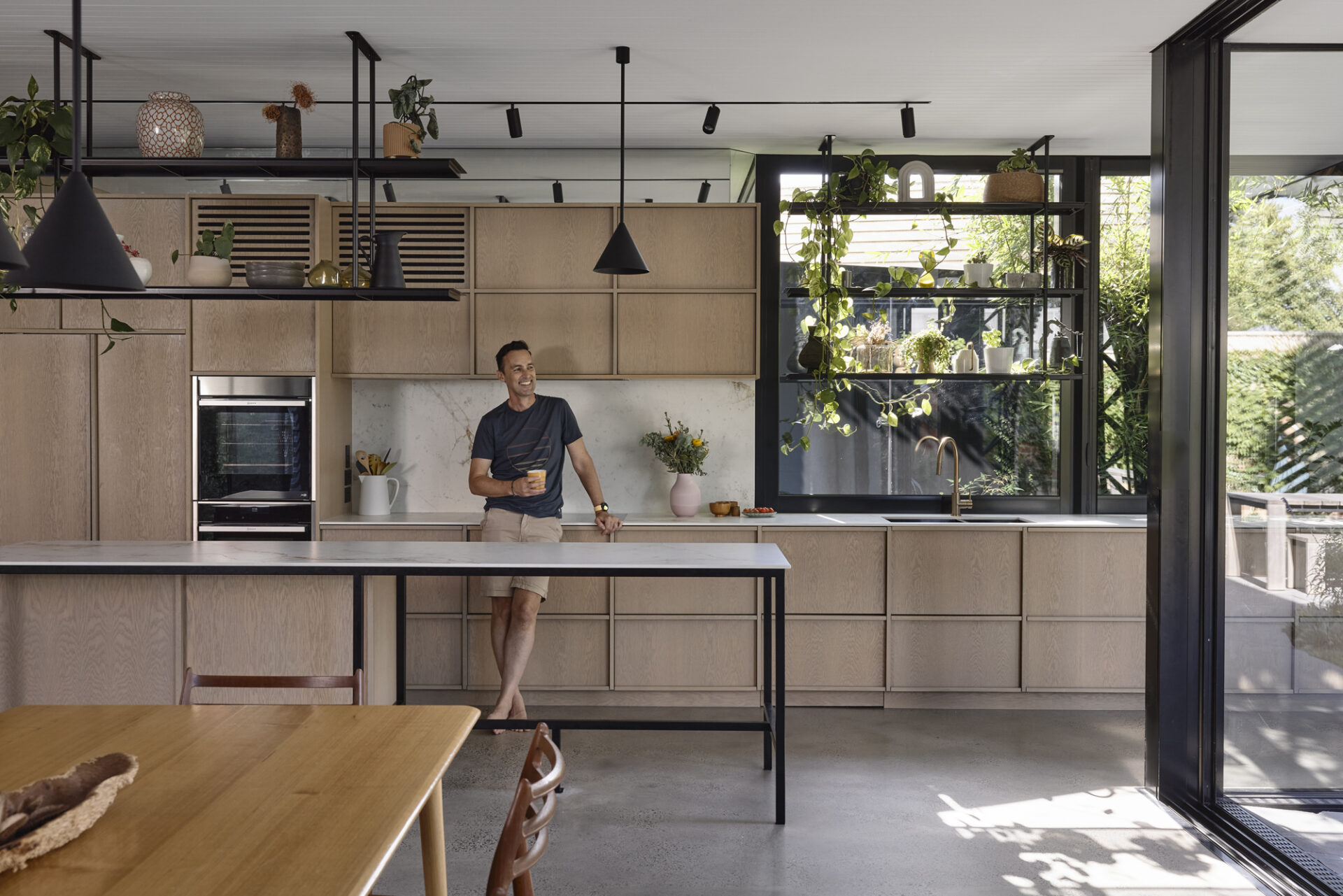 Drawn to deliberative design, simplicity and functionality, inspired by their year living in Japan, they asked for more considered and purposeful space. “Something different.” Modern but not stark or boxy, bright and open but also cosy and comfortable, areas to entertain and private areas to retreat suited to each individual.