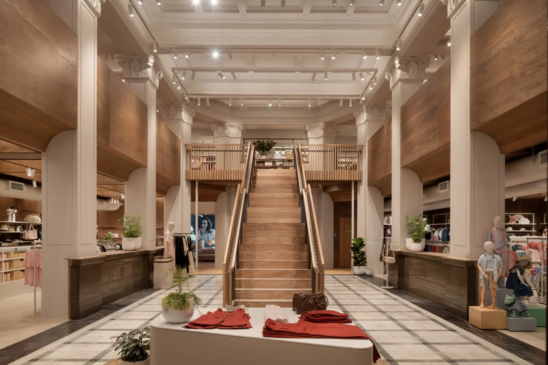 In collaboration with Ballarat-based Moloney Architects, the former Bank of New South Wales in Brisbane’s CBD has been thoughtfully reimagined as a contemporary Country Road retail destination. Designed originally as a symbol of civic solidity, the heritage building’s enduring architectural character has guided a restrained and respectful adaptive reuse.