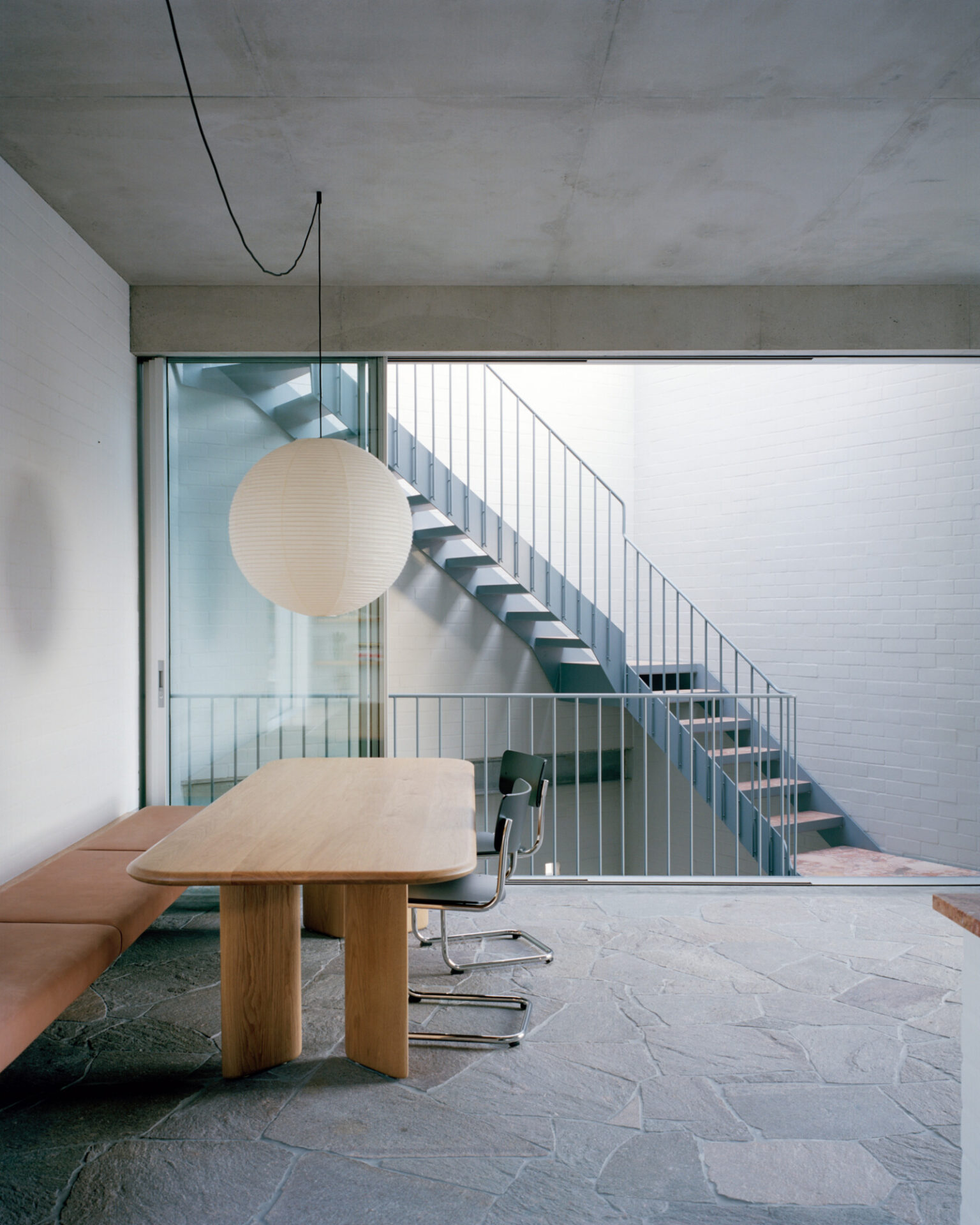 An outdoor stair connects this room with a rooftop garden and terrace. This final vantage point helps locate the house within the neighbourhood’s existing fabric, forming part of a dense but varied whole.Â