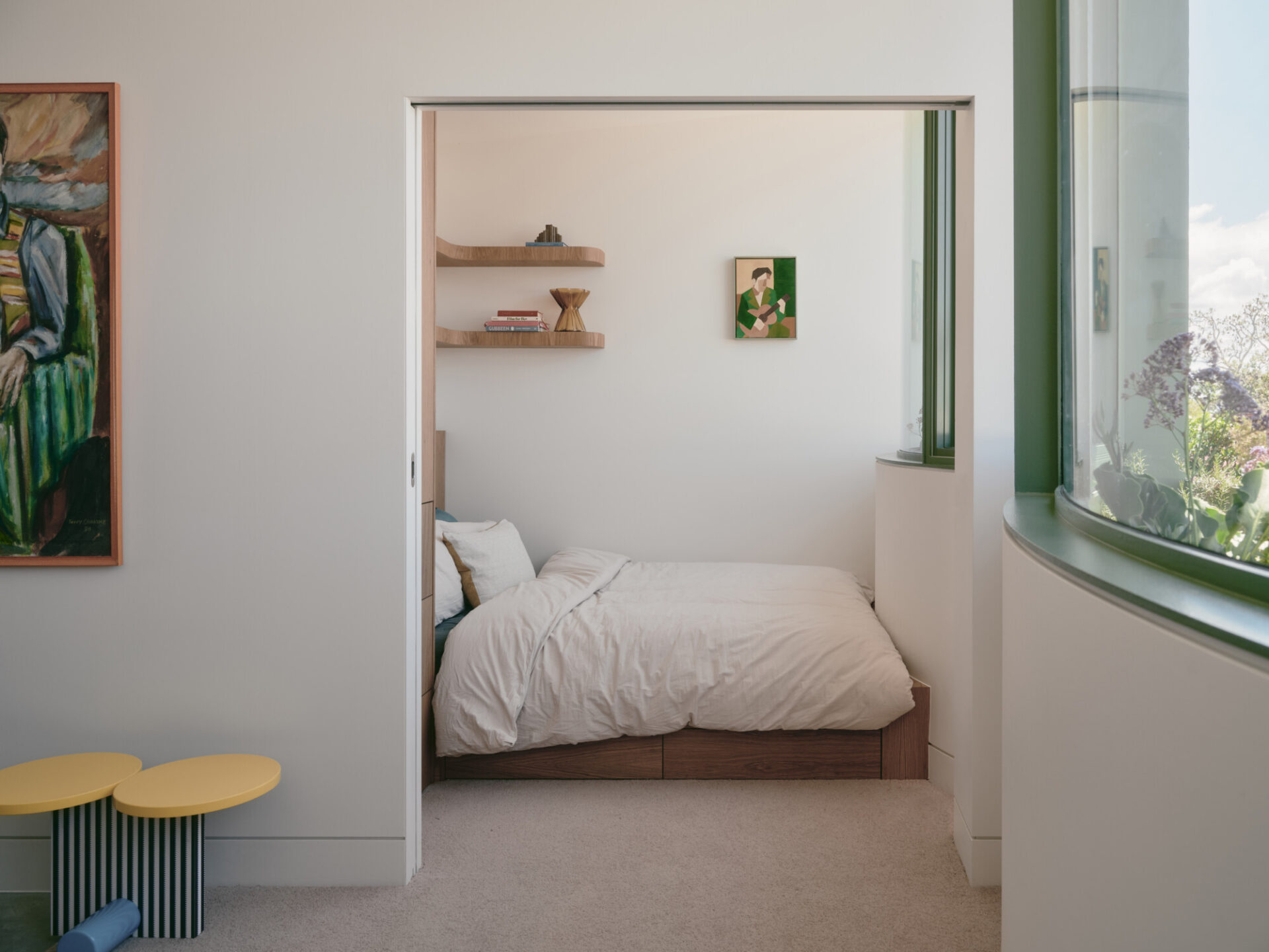 Curved windows, playful colour and integrated planter boxes create moments of delight while encouraging passive surveillance, helping the laneway feel safer and more connected to life. Designed for a young family, the flexible studio supports working from home, guests and future independent living, while maintaining a strong relationship to the main house and garden. Inside, thoughtful planning and built-in furniture make the most of the space, creating calm interiors.Â