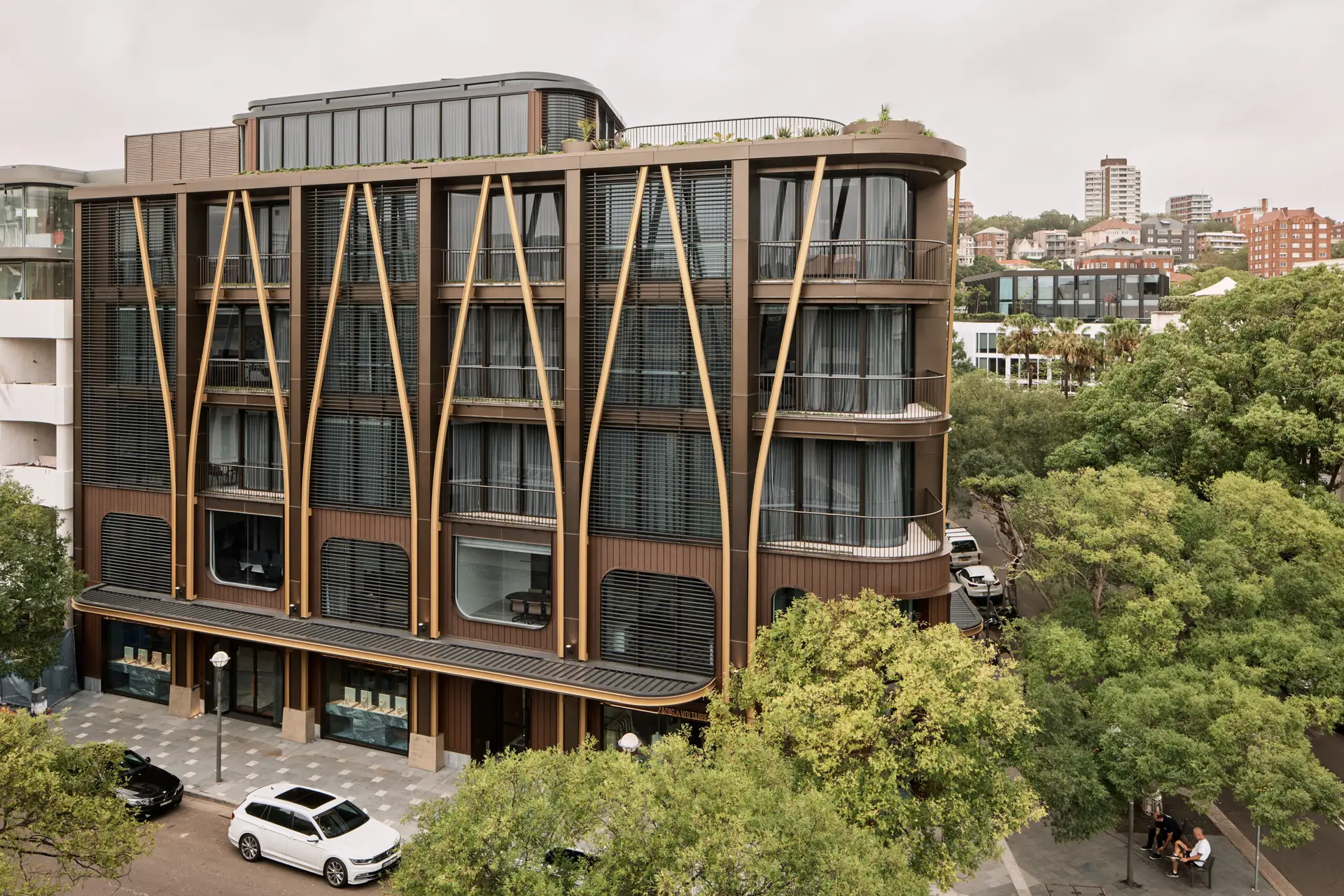 Close collaboration with engineers enabled space optimization, including tensile concrete construction for higher ceilings and a car stacker system to maximize commercial space. Double Bay Arches exemplifies thoughtful design, sustainability, and architectural excellence in the urban landscape.