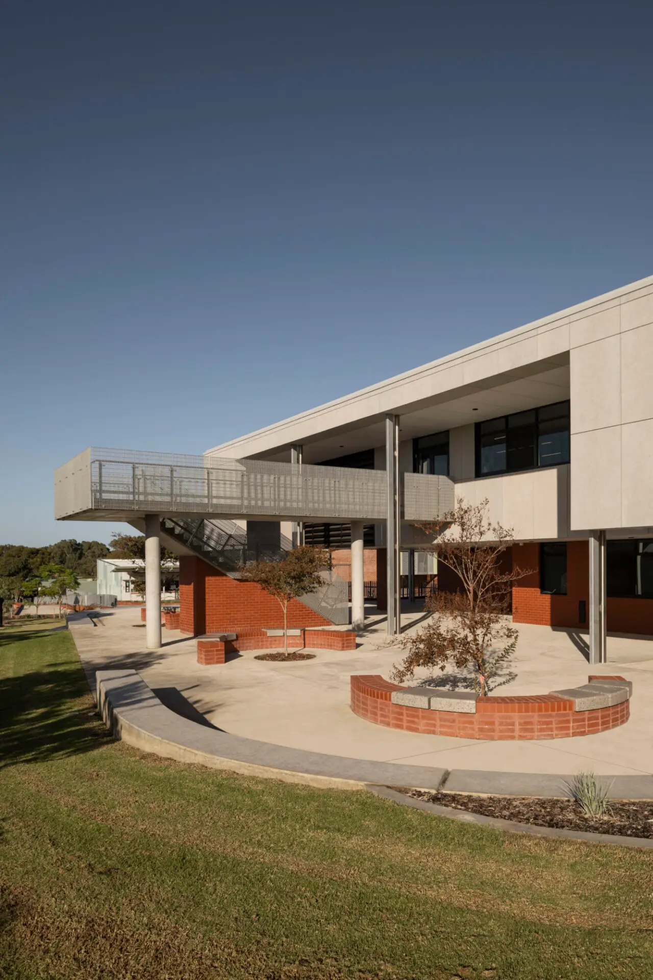 The new building program at Duncraig Senior High School expands capacity for specialist teaching, particularly supporting Science and English curriculums. The project introduces state-of-the-art Science and English facilities, featuring 11 specialised laboratories and 16 modern classrooms, increasing the school's capacity to 1,850 students.