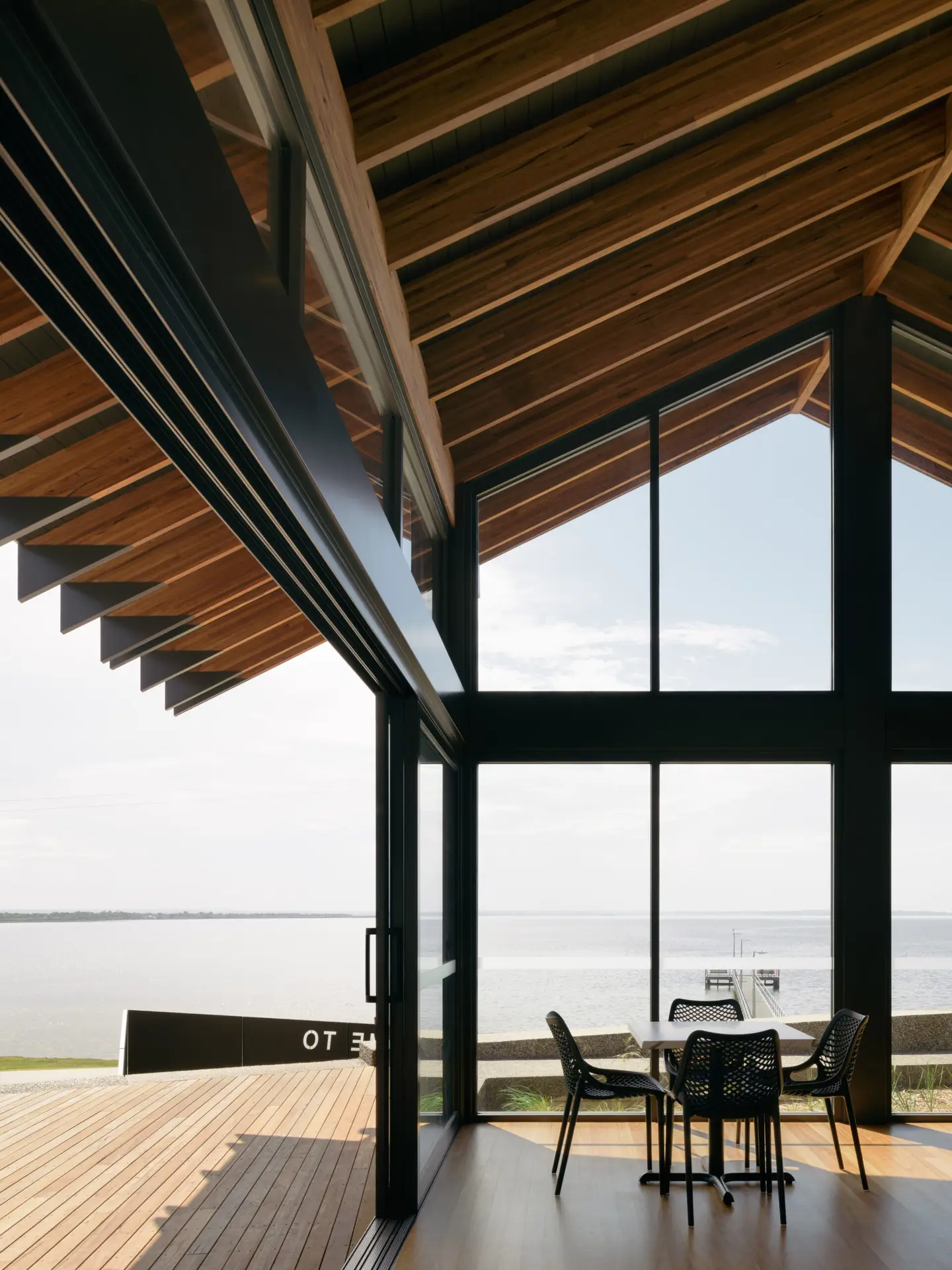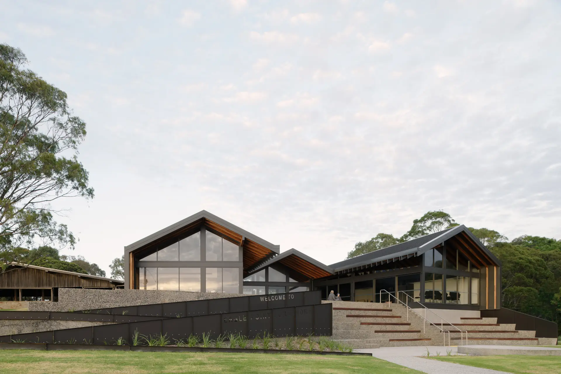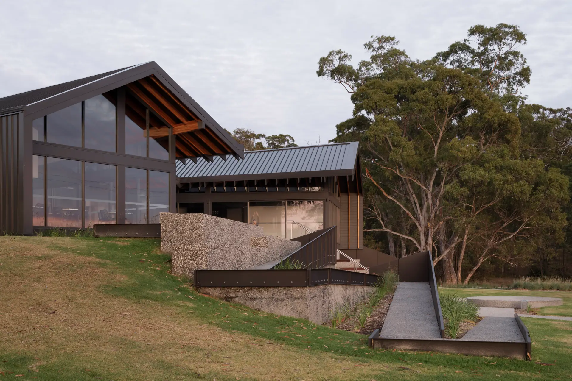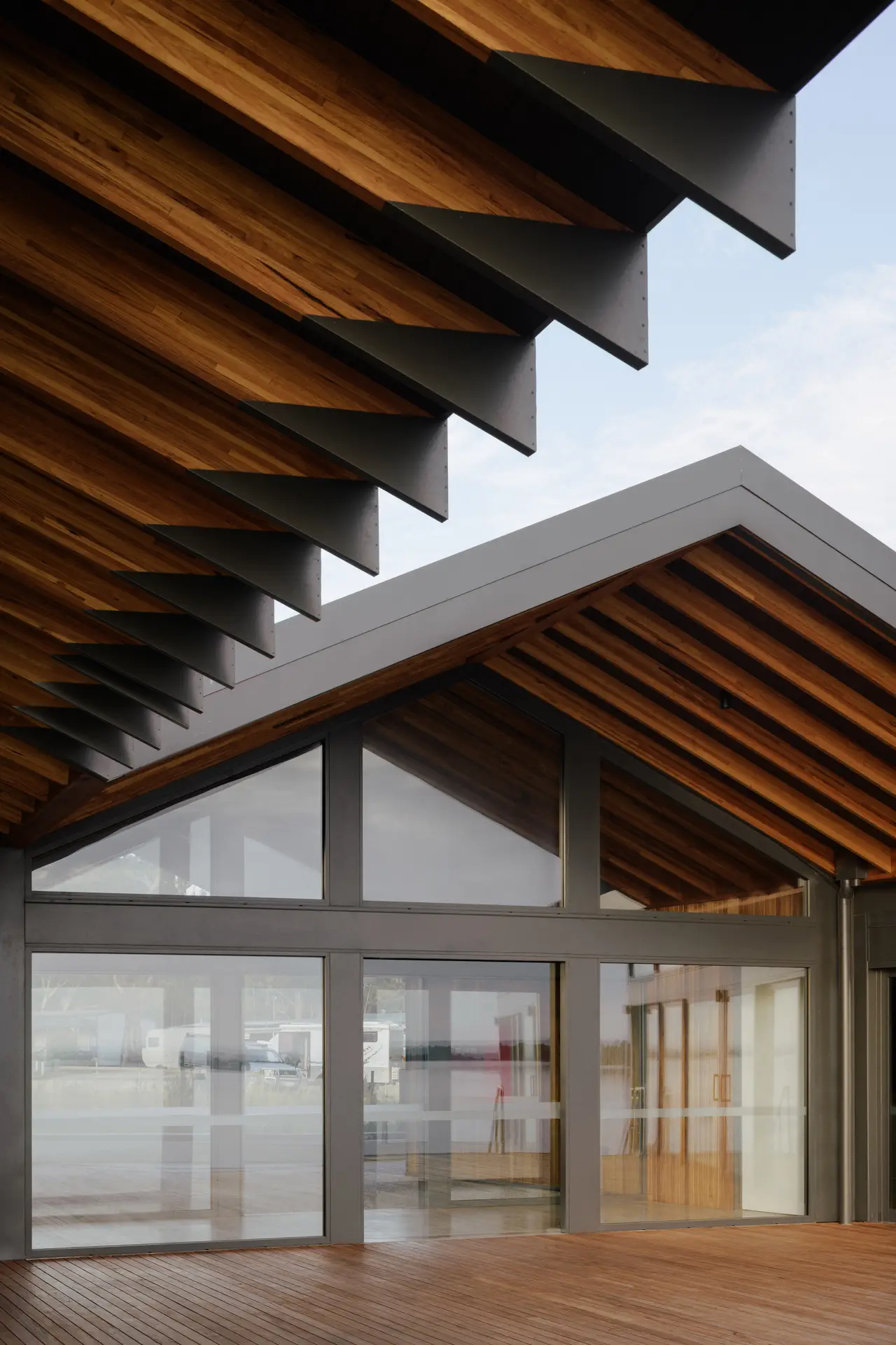 The Eagle Point Foreshore Hub is a multi-purpose community facility on Lake King in East Gippsland. It includes a new foreshore landscape, playground, event space and a community building including a reception for the Eagle Point Caravan Park, café, public toilets and community hall. The project creates a focal point for the local community and visitors. The building and surrounding landscape design were established through close engagement with the local community, and a careful study of the existing architectural and landscape types within the surrounding area, providing a new insertion sympathetic to its context.