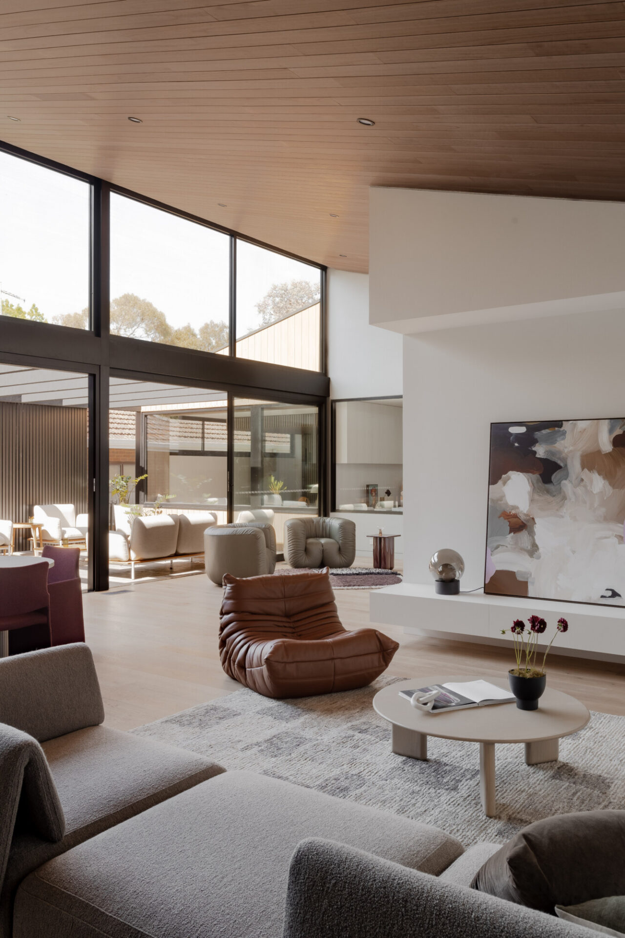 Passive design strategies, including cross-ventilation, deep eaves, high-performance glazing and an installed rooftop solar PV system, underpin the home’s energy efficiency and thermal comfort. The result is a calm, flexible and environmentally responsive sanctuary that supports contemporary family life while remaining deeply connected to its natural setting.
