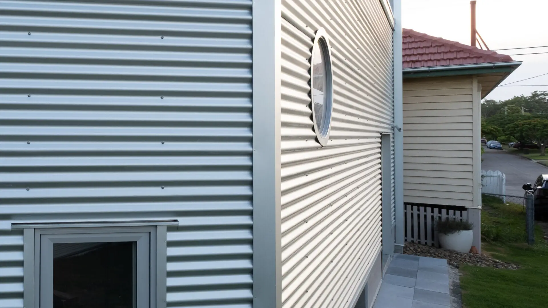 Originally a two-storey tower was considered, until an economic strategy emerged to tip it over to become a single-storey addition. Every effort was made to make this version even more delightful through materiality and geometry. Â