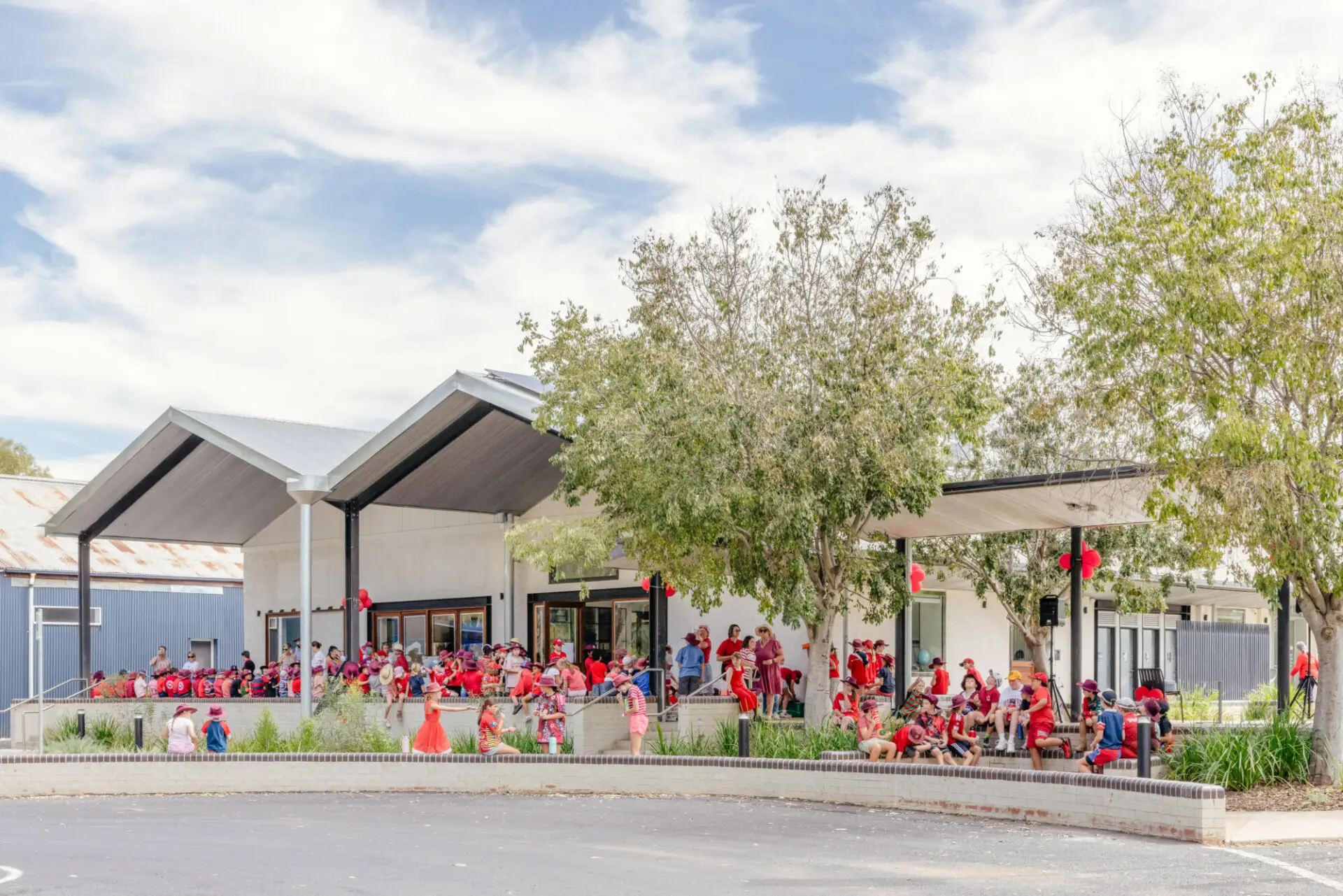 The Gilgandra Library + Community Hub demonstrates how strategic urban design can revitalise regional town centres through integrated civic infrastructure. This transformative project combines adaptive reuse of a former Target Country building with a reimagined public plaza to create Gilgandra's first true civic heart. The library accommodates ambitious community programming from youth robotics to business incubation, while the adjacent plaza establishes a green corridor connecting Miller Street's heritage precinct to the Castlereagh River. Native landscaping provides flood-resilient stormwater management while creating flexible event and gathering spaces. The coordinated building and landscape strategy addresses multiple urban challenges simultaneously, inadequate civic facilities, lack of public space, and disconnection between the commercial centre and natural systems. This integrated approach maximises community value while establishing a replicable model for heritage-sensitive town centre regeneration that strengthens both built fabric and community capacity.