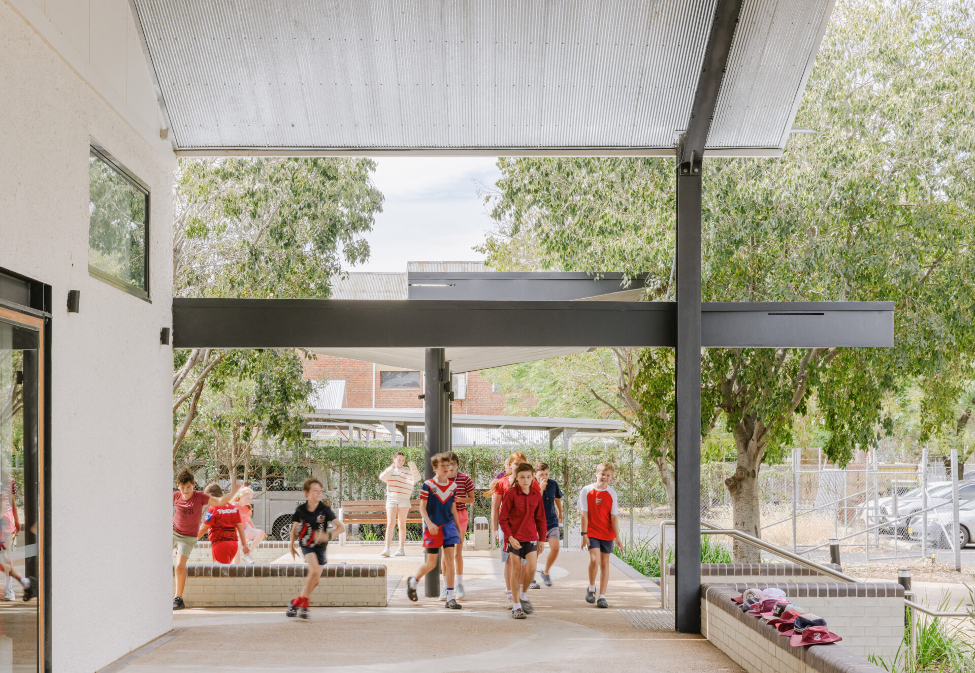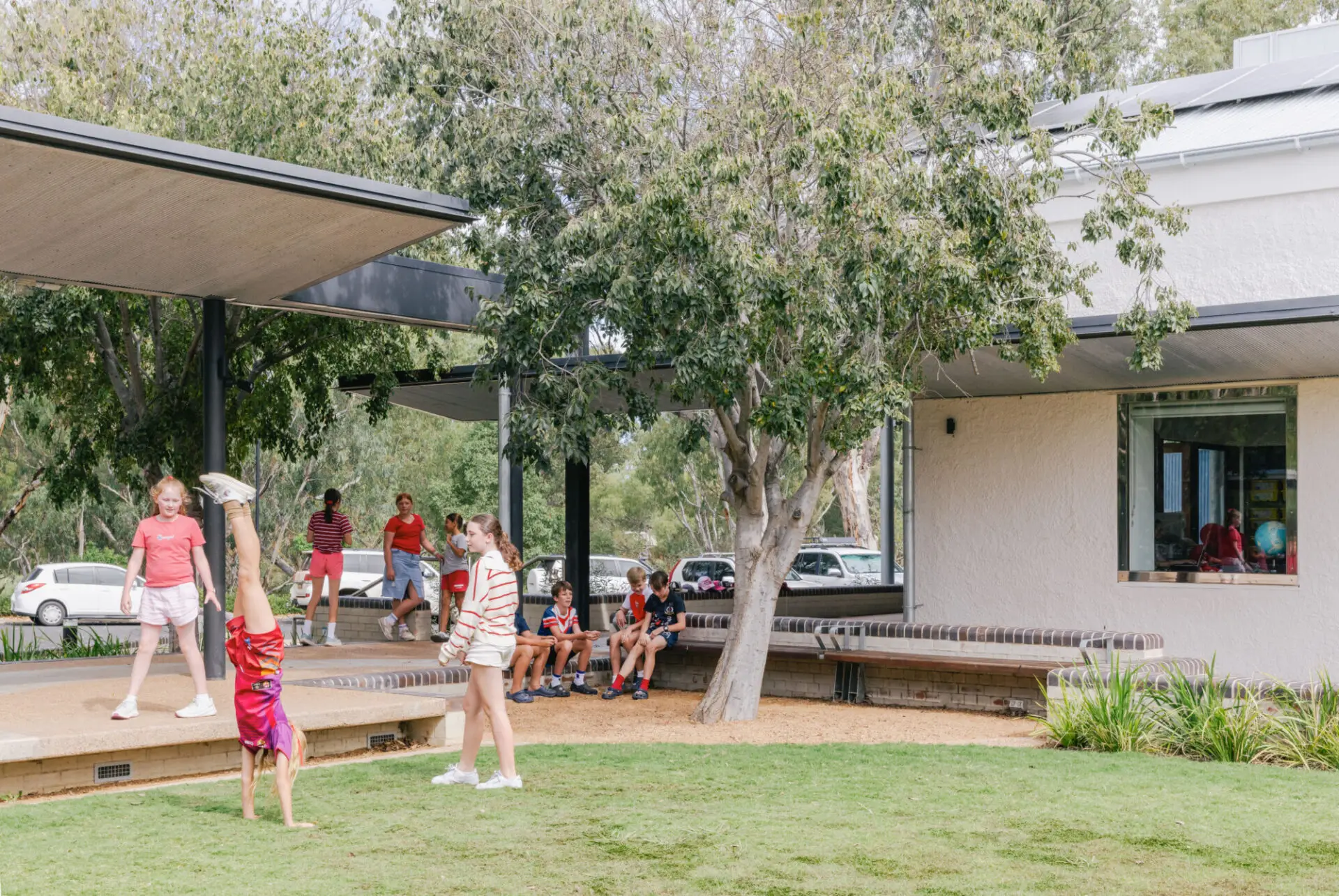 The Gil Library Hub’s design welcomes natural light and frames serene riverbank views. The Miller Street frontage, with expansive art deco windows and built-in seating, invites reading and reflection. Flexible interiors accommodate diverse events, and the children’s area opens to a safe courtyard for play. Durable finishes and quality materials combine with a soaring roofline enhancing calm and spaciousness. The staff value the clever storage solutions. Outdoor areas suit both large and small gatherings, making the plaza a lively main street hub. Overall, the Gil Library Hub is a functional, inspiring, and community-focused space fostering connection, learning, and pride.
