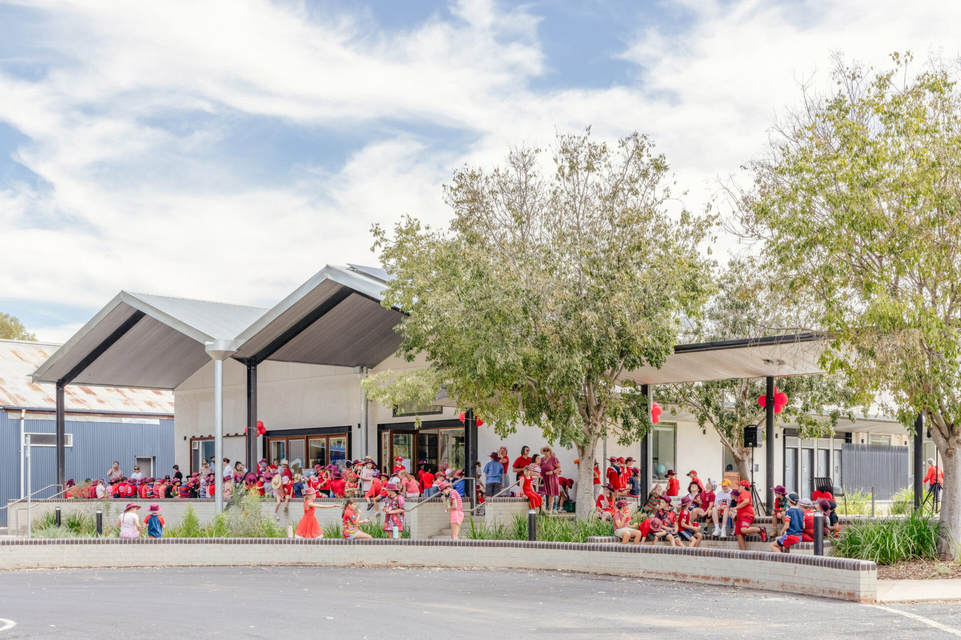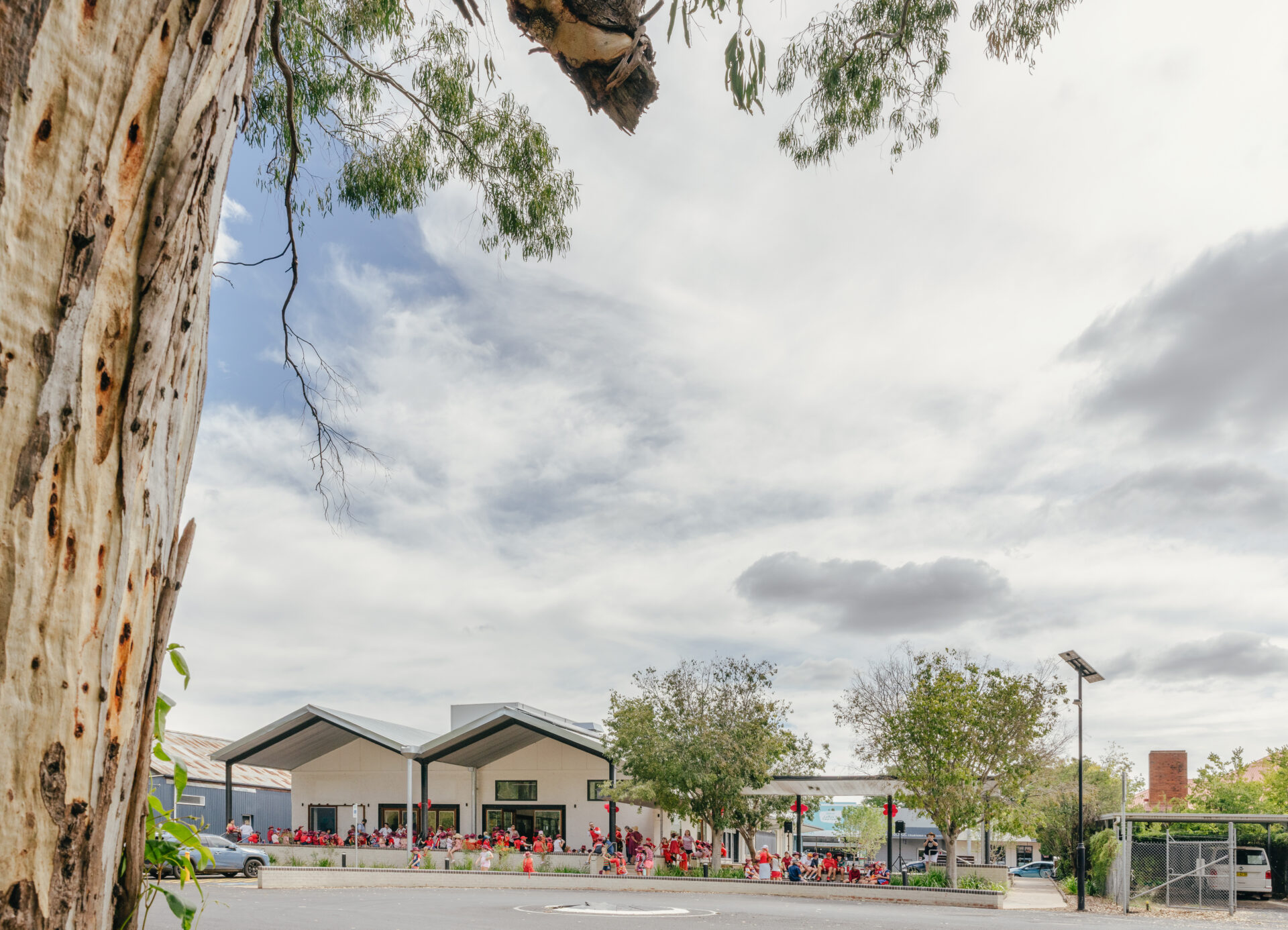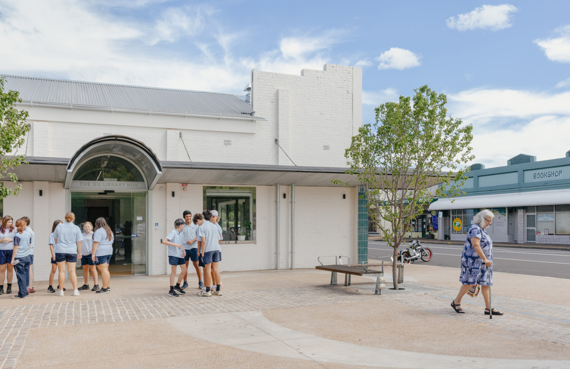 The Gilgandra Library + Community Hub demonstrates how strategic urban design can revitalise regional town centres through integrated civic infrastructure. This transformative project combines adaptive reuse of a former Target Country building with a reimagined public plaza to create Gilgandra’s first true civic heart. The library accommodates ambitious community programming from youth robotics to business incubation, while the adjacent plaza establishes a green corridor connecting Miller Street’s heritage precinct to the Castlereagh River. Native landscaping provides flood-resilient stormwater management while creating flexible event and gathering spaces. The coordinated building and landscape strategy addresses multiple urban challenges simultaneously, inadequate civic facilities, lack of public space, and disconnection between the commercial centre and natural systems. This integrated approach maximises community value while establishing a replicable model for heritage-sensitive town centre regeneration that strengthens both built fabric and community capacity.
