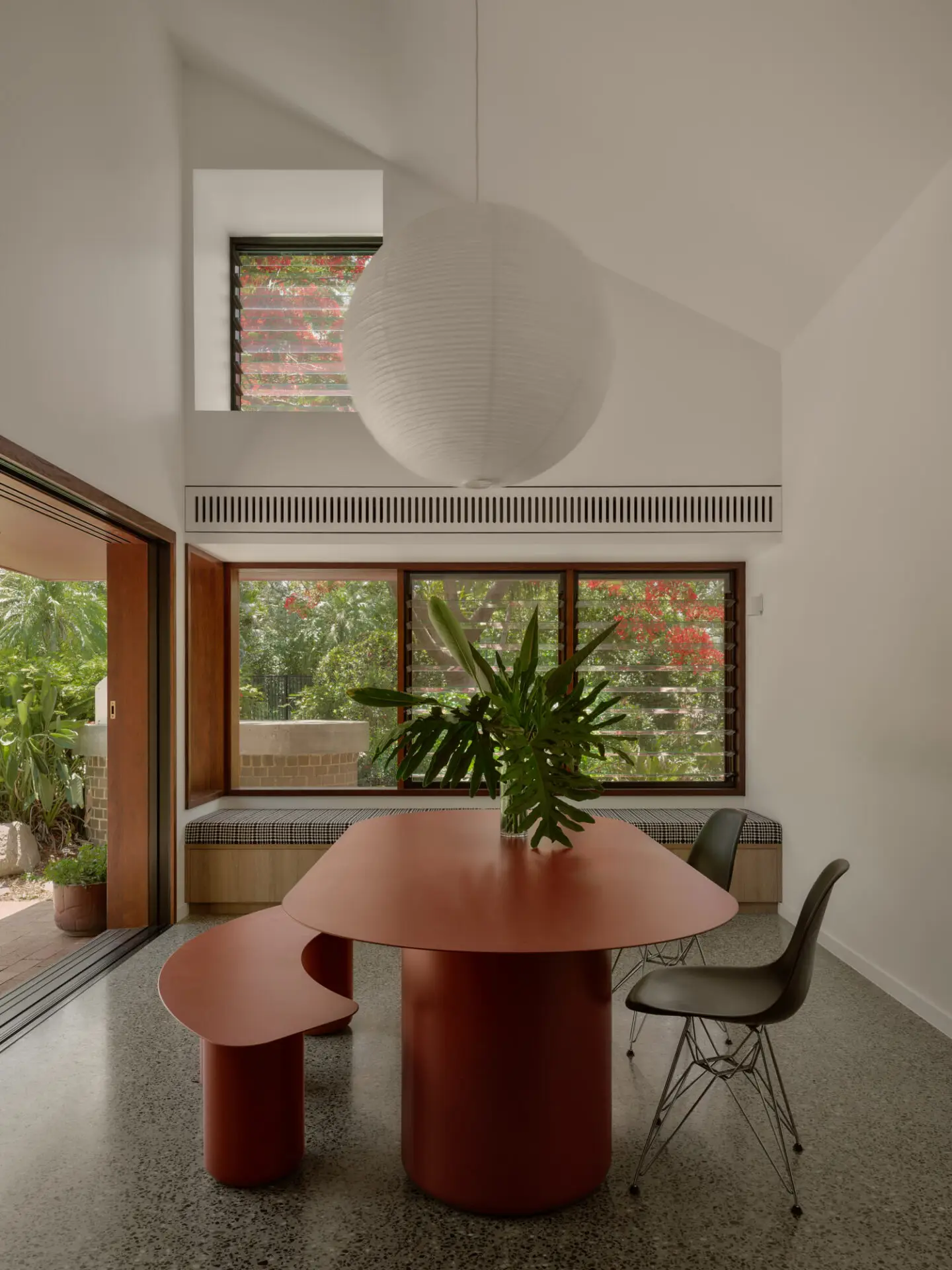 Humble in scale but ambitious in outcome, Goldilocks Haus is a striking residential addition that demonstrates how a single, well-considered move can transform everyday family life. Designed for interior designer Hayley and her family, the project replaces a compressed dining nook with a light-filled garden room that rebalances the home’s relationship to kitchen, landscape and gathering.