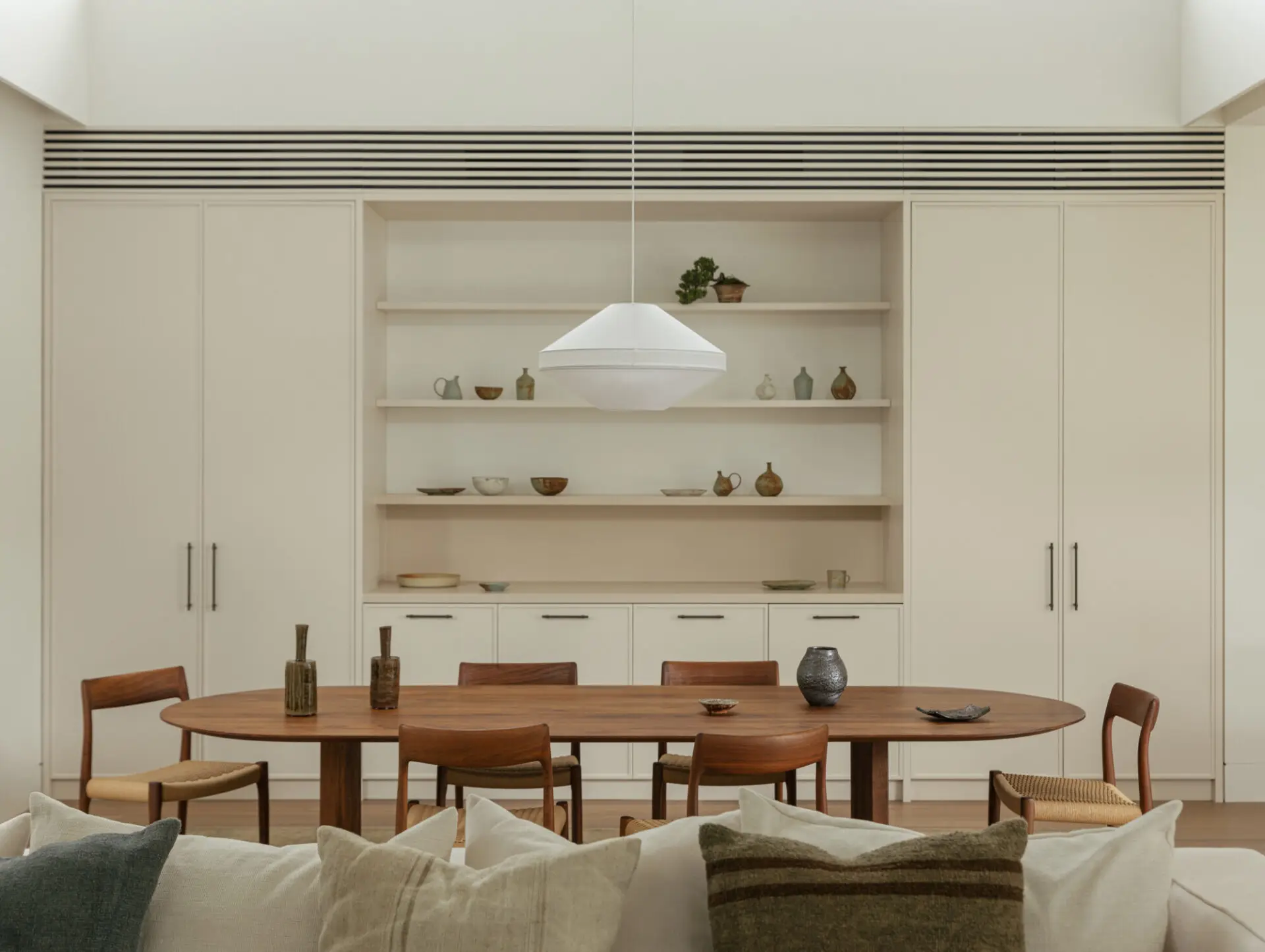 Referencing the openness and informality of Southern Californian mid-century homes, the interiors wrap around a landscaped garden, pool and terrace by Adam Robinson Design, strengthening the relationship between inside and out and embedding outdoor living into daily ritual.