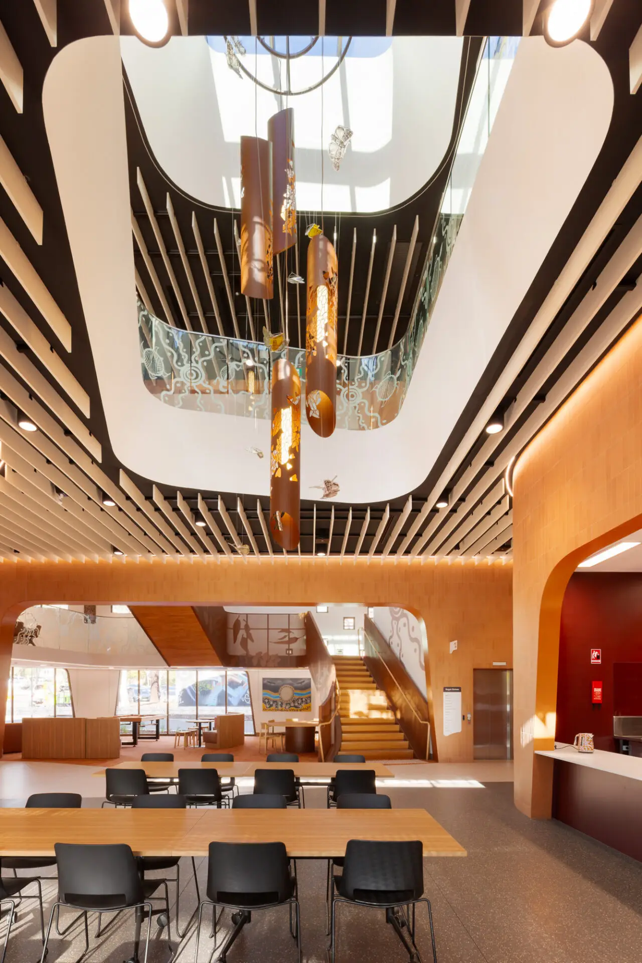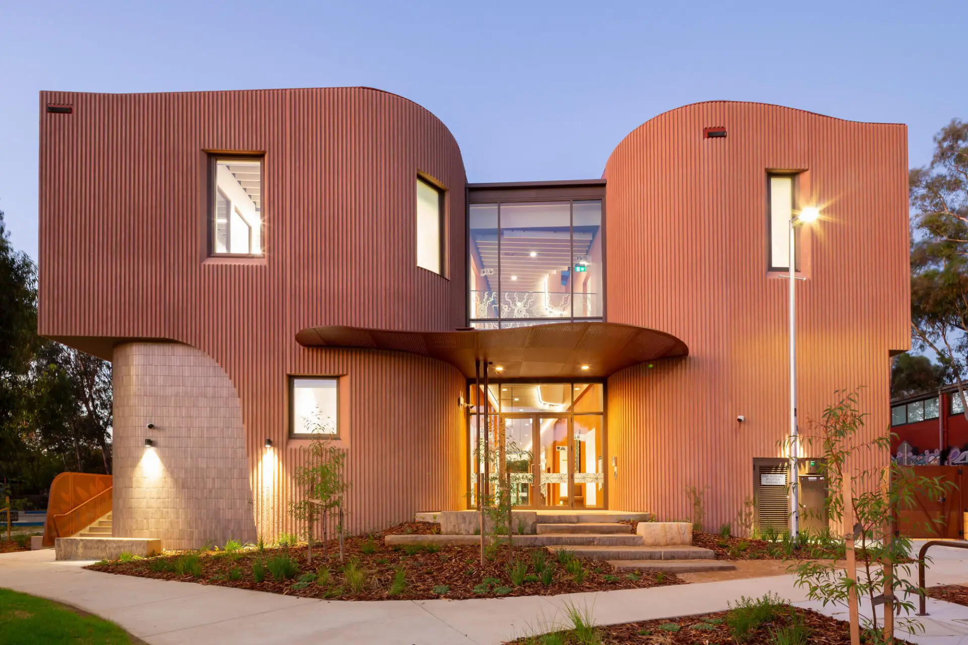 Gugan Gulwan is a project that truly represents the community it serves. A space for First Nations people to gather, connect and share, in a building that feels safe, culturally considered, and strongly identifiable. The outcome is an outstanding, a new purpose-built facility, designed and delivered with deep community consultation, welcoming both local and National First Nations people. Gugan Gulwan supports at risk Aboriginal and Torres Strait Islander youth, and a culturally considered space was designed by COX architecture in collaboration with ck architecture, to offer a building not only reflective of its function, but more significantly, its people and place. An uplifting space, its design responds to Country and community, supporting Country to flow through the site and define gathering spaces within the project. Careful consideration has been made to reflect and embed First Nations culture in all aspects of the building, including the significant artwork integration.