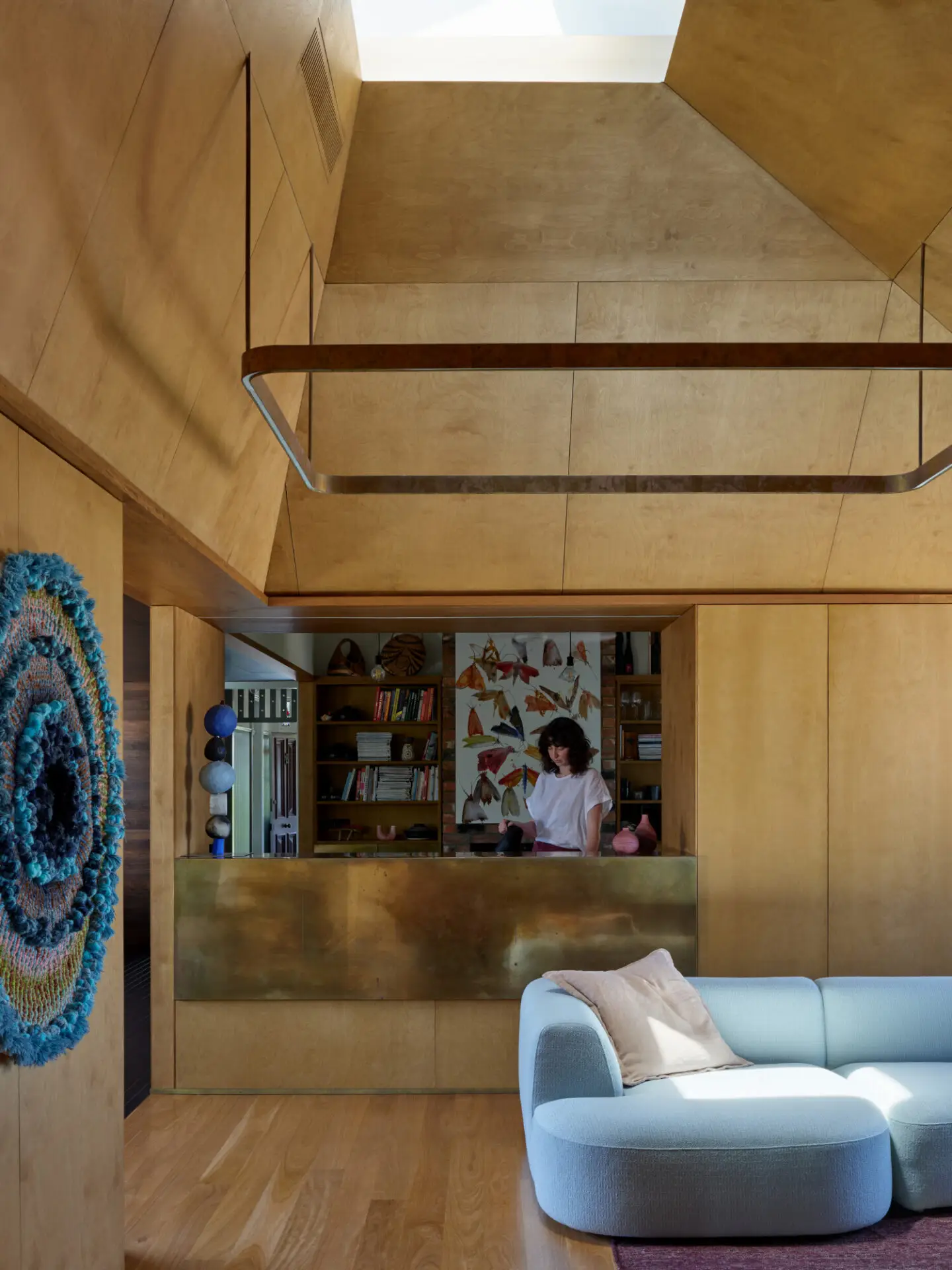 The Hakea House is named after a native that blooms after fire. Tragically this project came about after the existing house was largely reduced to ash in 2021 by fire only months after the completion of a rear extension (by Bligh Graham Architects). The house consists of three portions – the front mostly rebuilt Queenslander cottage, the surviving treehouse-like rear extension, and a significant new two-storey ‘middle’ that overlooks the existing pool. The middle portion negotiates between the form and geometry of the traditional cottage, and the playful angular rear ‘treehouse’ that folds around trees and is wrapped in a vine mesh screen. The overall ensemble orchestrates a distinctly Paddington journey from street out into and above the garden with unfolding views over the gully and beyond. At its heart is a dramatic double-height north facing rainforest garden court overlooked by the principle living, sitting and dining spaces of the house.Â