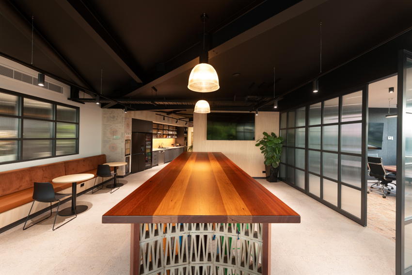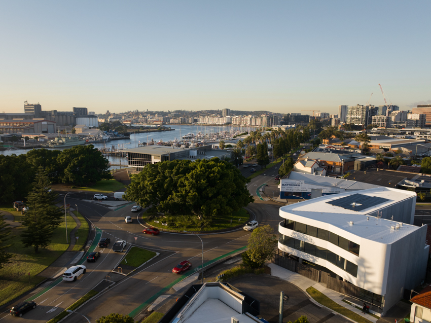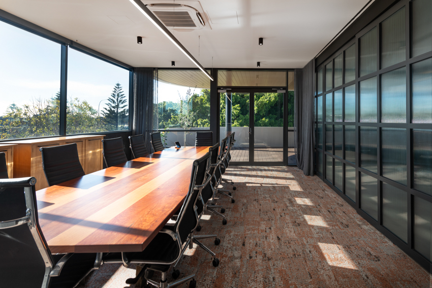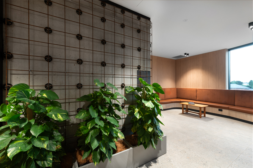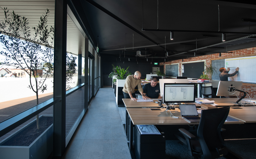 A commercial builder’s own headquarters, Hannell Street Commercial provides Core Project Group with a comfortable, collaborative modern office in a high profile location. The design of the building and office layout allows flexible workspaces, areas for downtime, places for privacy, places for collective discission and room for expansion for the growing company. Viewed in transit from the adjacent roundabout, the linear facacde of the building evokes horizontal movement at speed, with subtle changes in angle allowing light and shadow to articulate a changing appearance across the day.