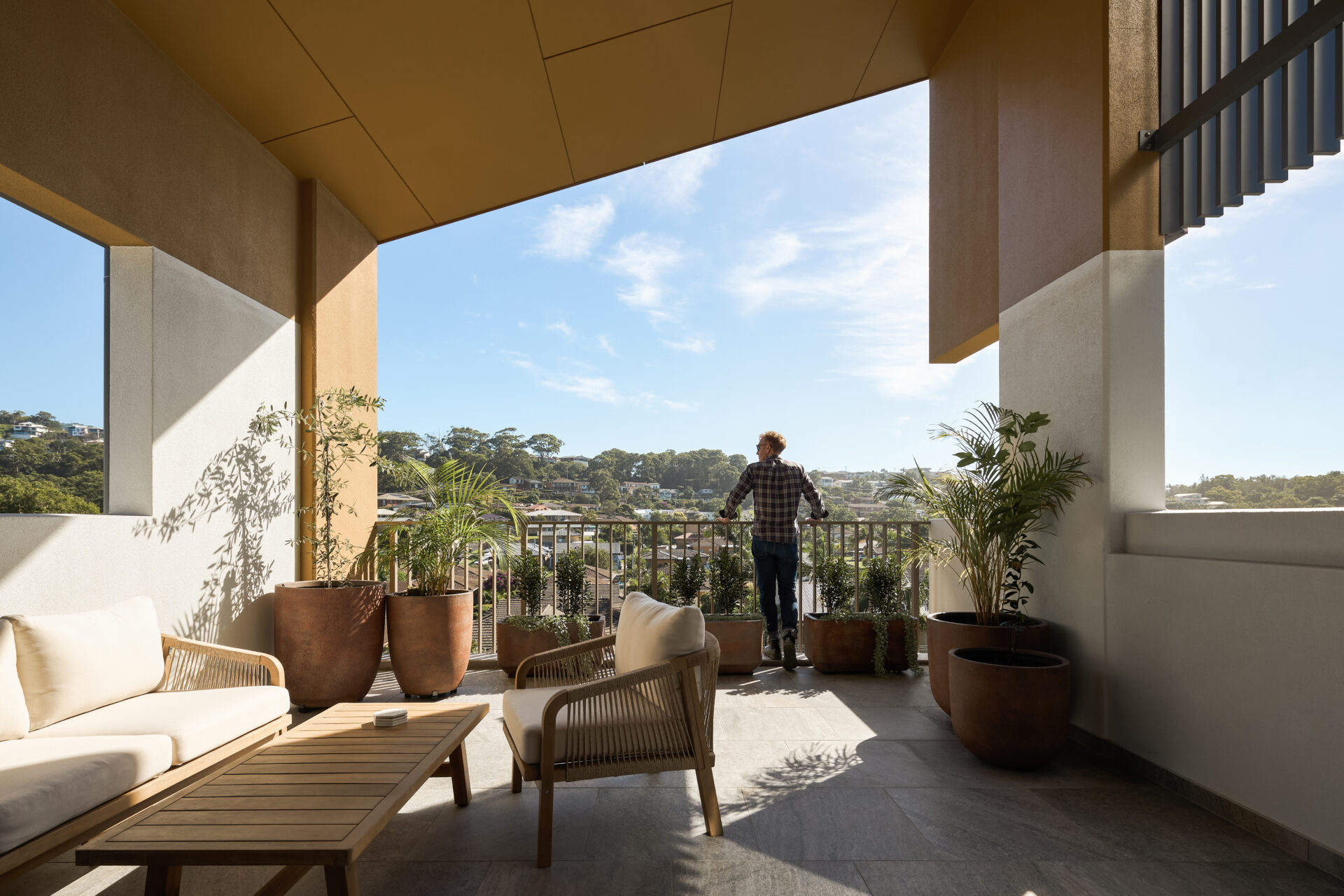 Headland Terraces, part of The Shoreline precinct in Coffs Harbour, is designed around the values of community, connection, and care. Its architecture embraces natural light, expansive views, and human-scaled spaces, fostering both wellbeing and social interaction.
