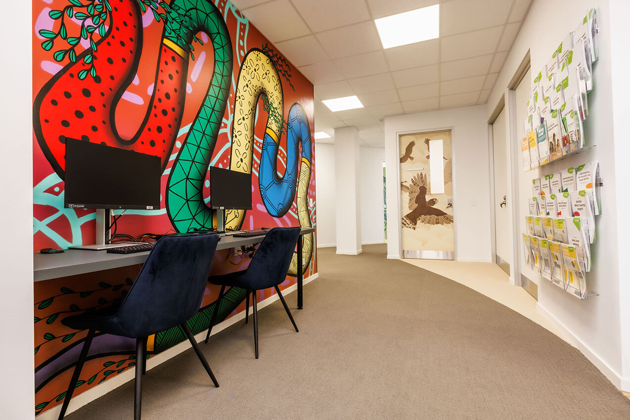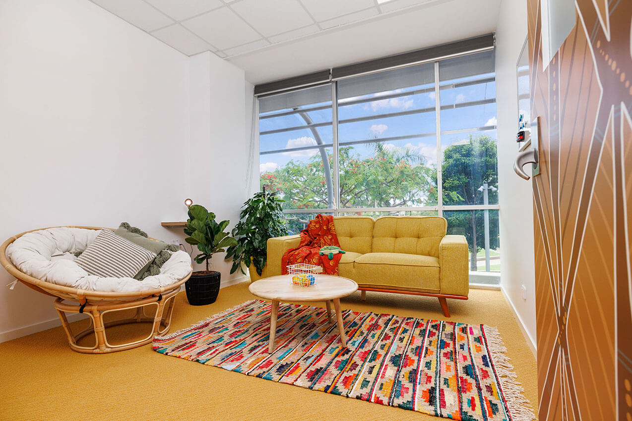 Headspace Palmerston provides advice and support for young people aged 12 to 25. The architects have carefully crafted spaces to deliver a non-clinical, inclusive, and safe space for young adults and staff alike. Counselling rooms are themed and furnished with eclectic and homely furniture.