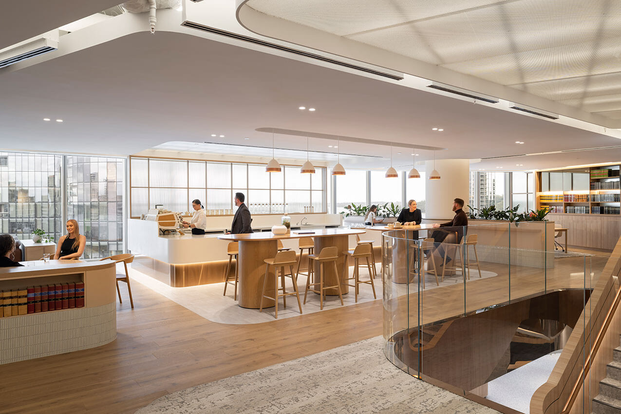 While traditionally legal firms are desk and office bound, Woods Bagot has implemented a hybrid office strategy to encourage new ways of working and interacting.