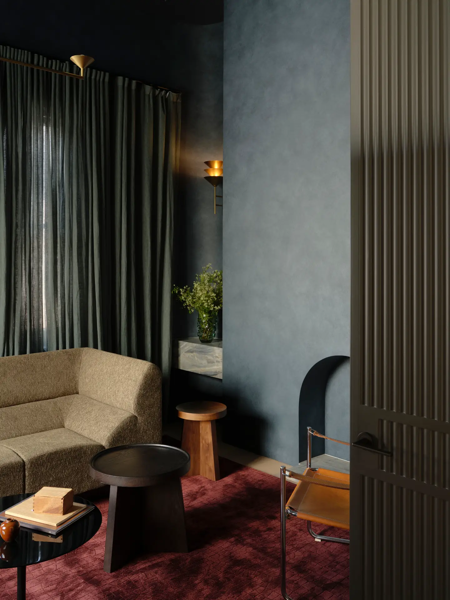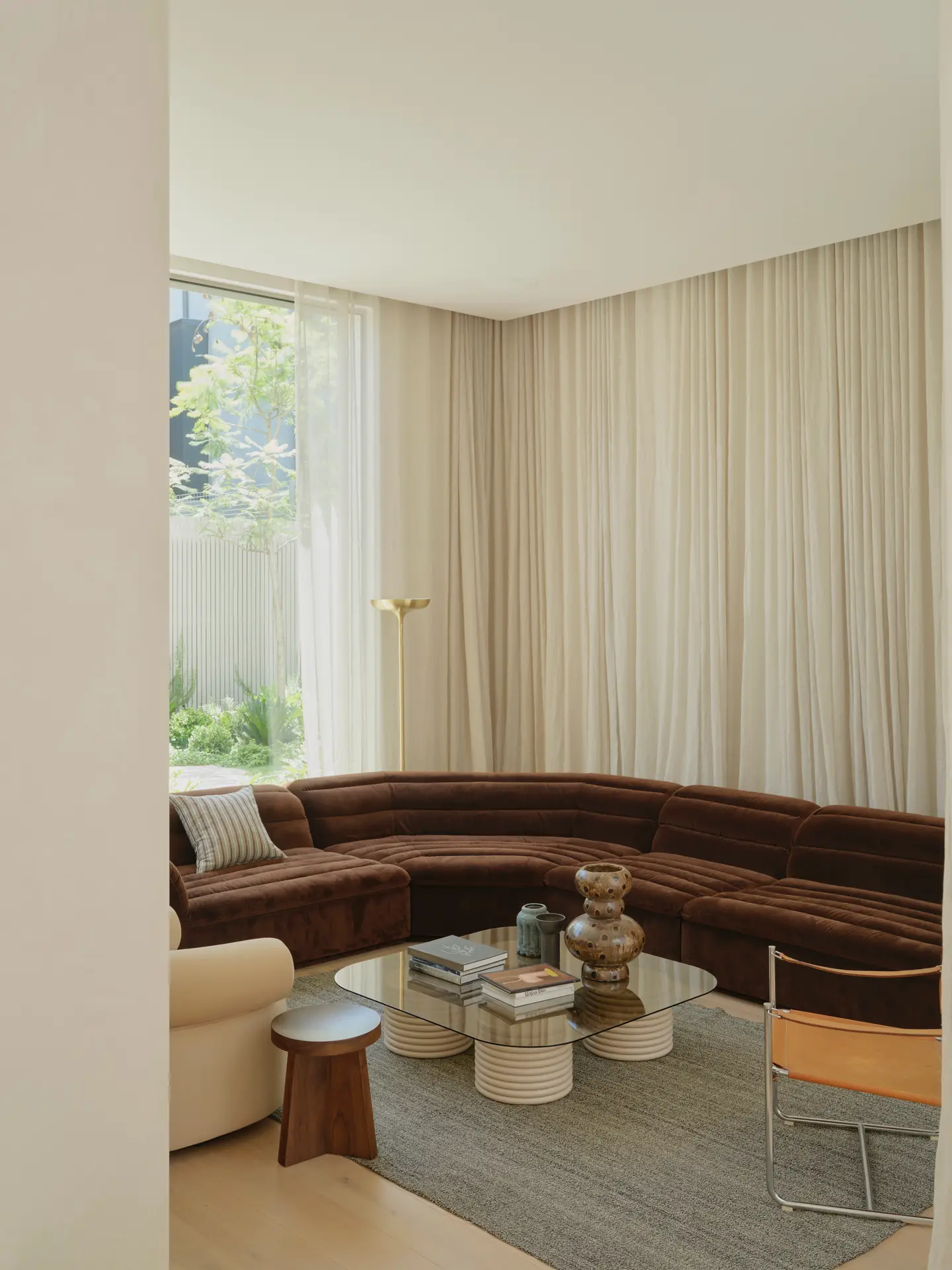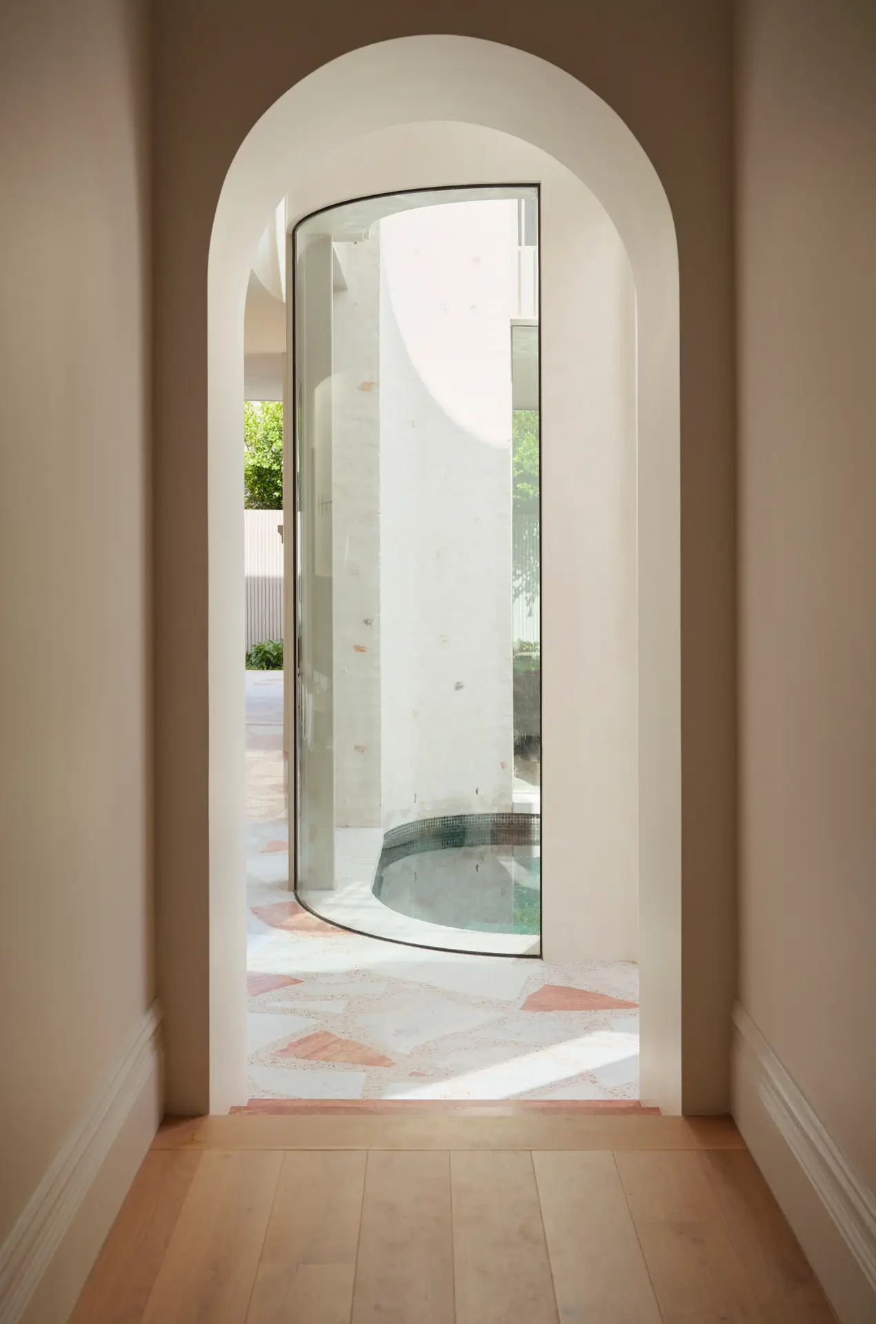 Small yet meaningful details, like an arched staircase window framing the surrounding chimneys, reinforce a connection to place. A sunken living area enhances volume perception, while the dining space seamlessly extends outdoors. Original Victorian features are preserved, blending heritage with contemporary elements. This project exemplifies how thoughtful design can transform a constrained site into a harmonious, immersive living experience.