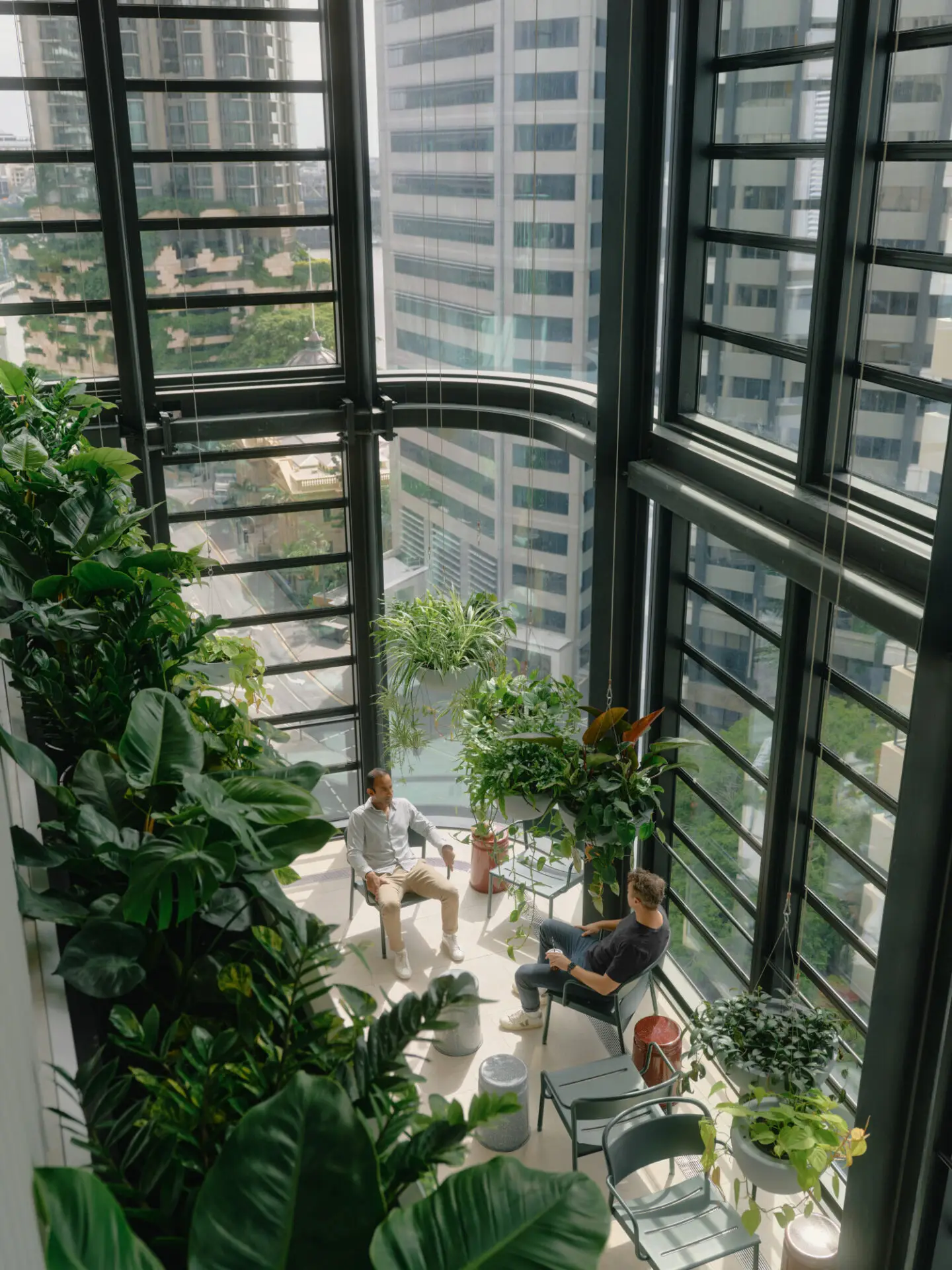 At its centre is the Town Square, featuring a dramatic three-storey circular void and an interconnecting stair that anchors collaboration, connection, and client engagement. Surrounding it, timber-filigree Garden Rooms and a double-height Garden Café immerse occupants in a subtropical landscape, natural ventilation, and dappled light.