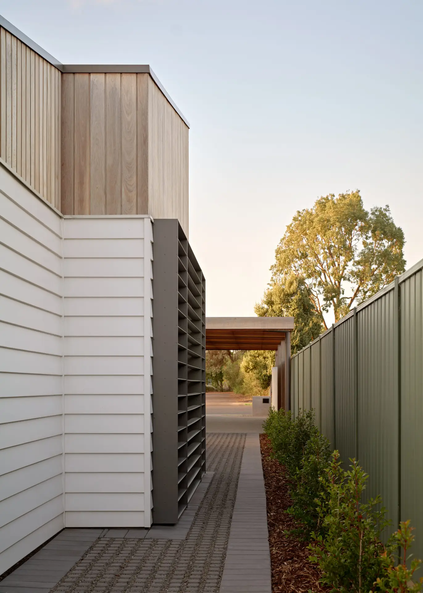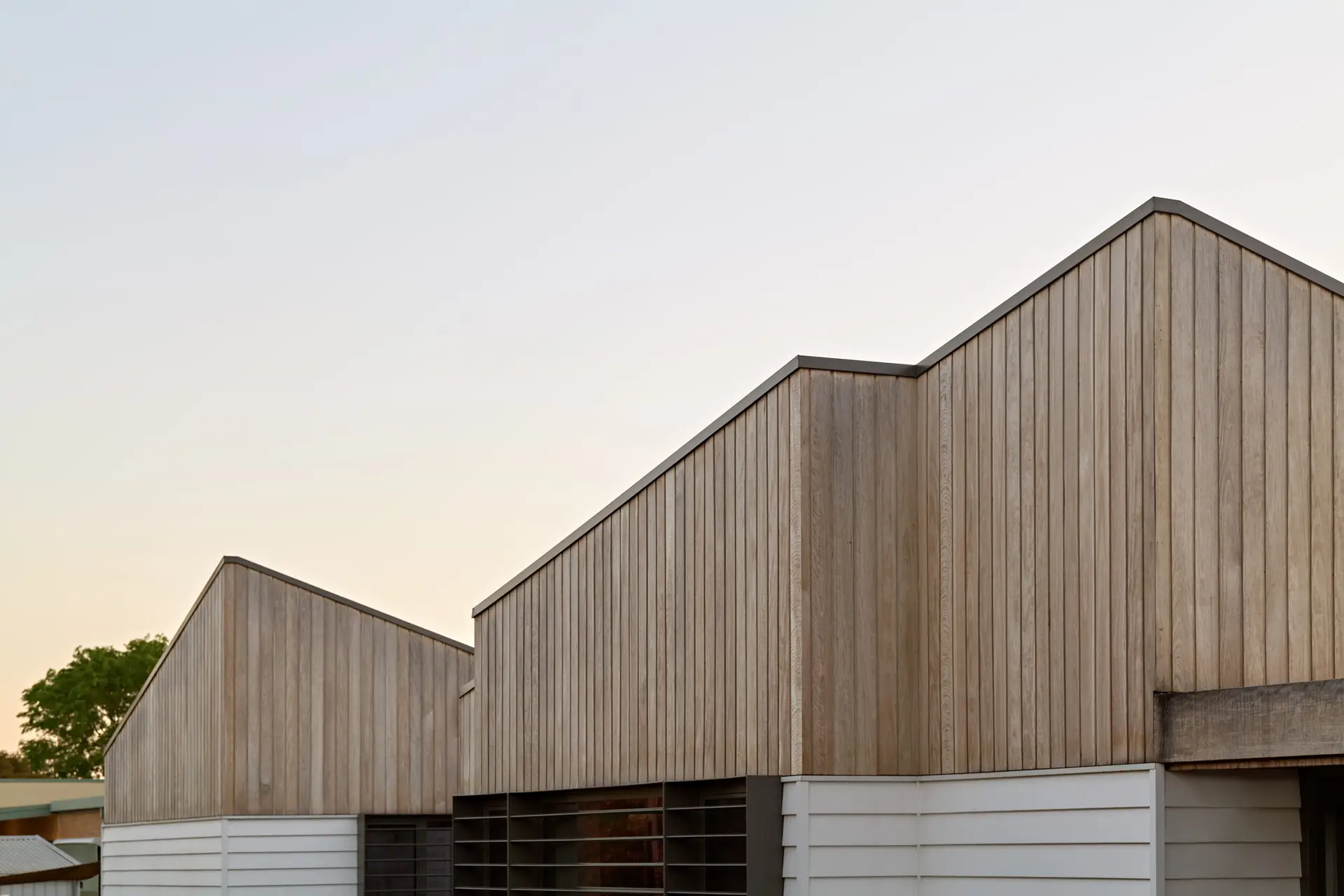 Sitting on a 10m wide and 50m long north facing site, the design positions three separate north-east vaulted pavilions along the long narrow site, creating an exterior courtyard in front of each. The three pavilions are all joined along their western edge by a tall spine that shields the whole project from Horsham’s harsh summer sun. This spine element encloses the two central courtyard spaces to create a high level of privacy throughout plan.