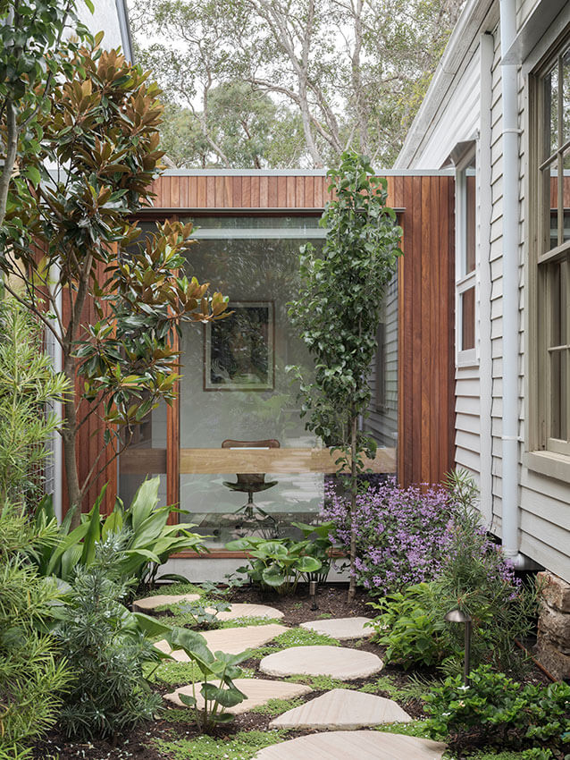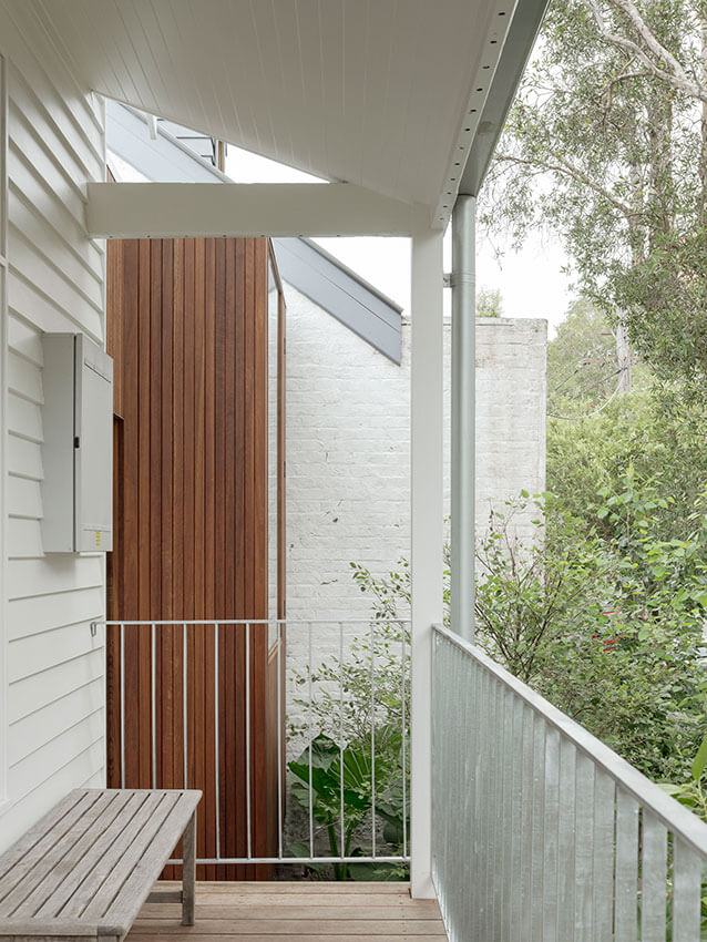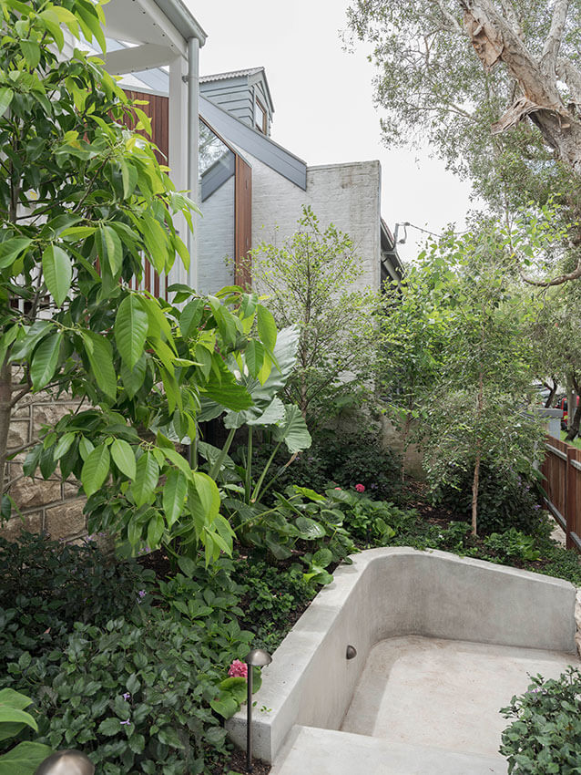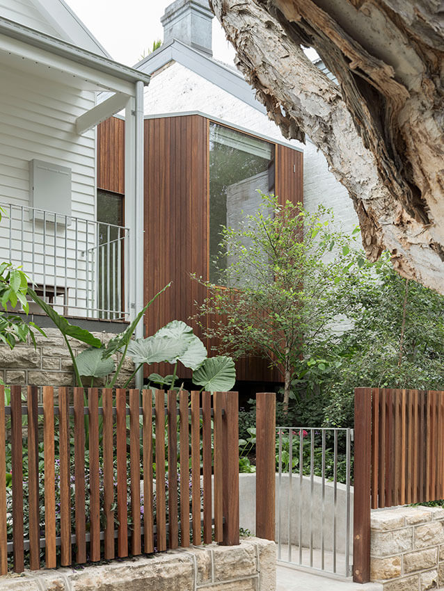 House in Lilyfield is an extension of a weatherboard cottage arising from the quirks of its streetscape context and the clients love of gardens.