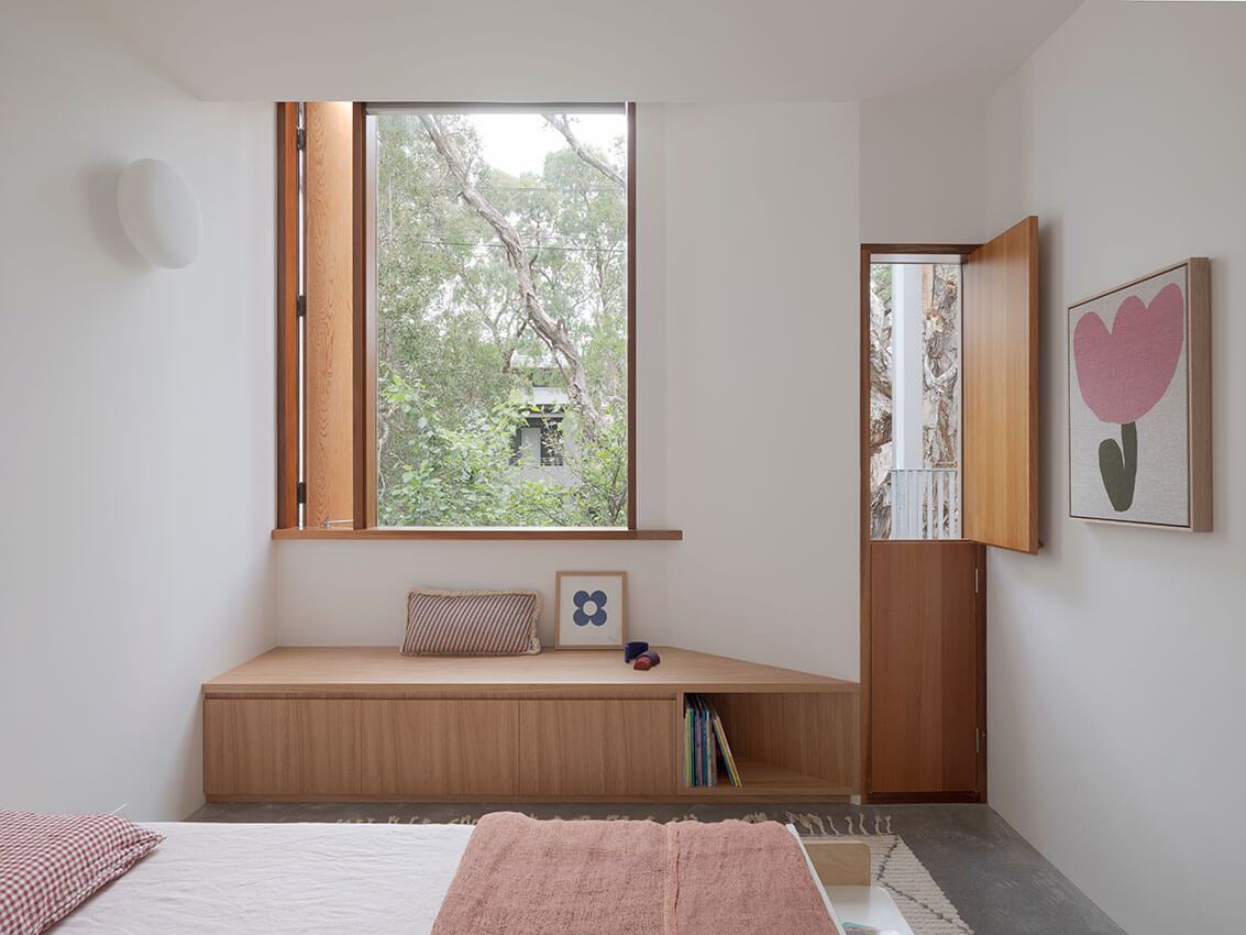 The design has given our family an improvement in both quantity, and quality of spaces. The bedroom wing makes the home feel bigger than it is. The rooms are not only functional but also pleasant to be in, everything feels considered. Gone are the days where every room had to have dual purpose the dining table was both work space and meals, and the living room was a cluttered play zone. I now love coming home through our beautiful garden and seeing the kids play in the spaces inside. It very much feels like a home we can all enjoy.