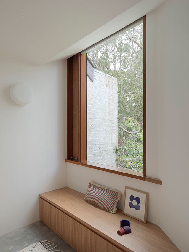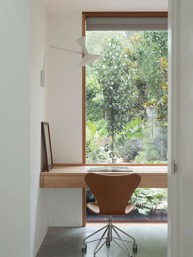House in Lilyfield demonstrates how a relatively small architectural insertion into an existing dwelling can have positive effects across the entire house. Whilst only two new rooms are created in a modest footprint, they provide a variety of different spatial experiences, new connections to gardens and the street, and alleviate the growing pressure of a young family with parents that work from home.