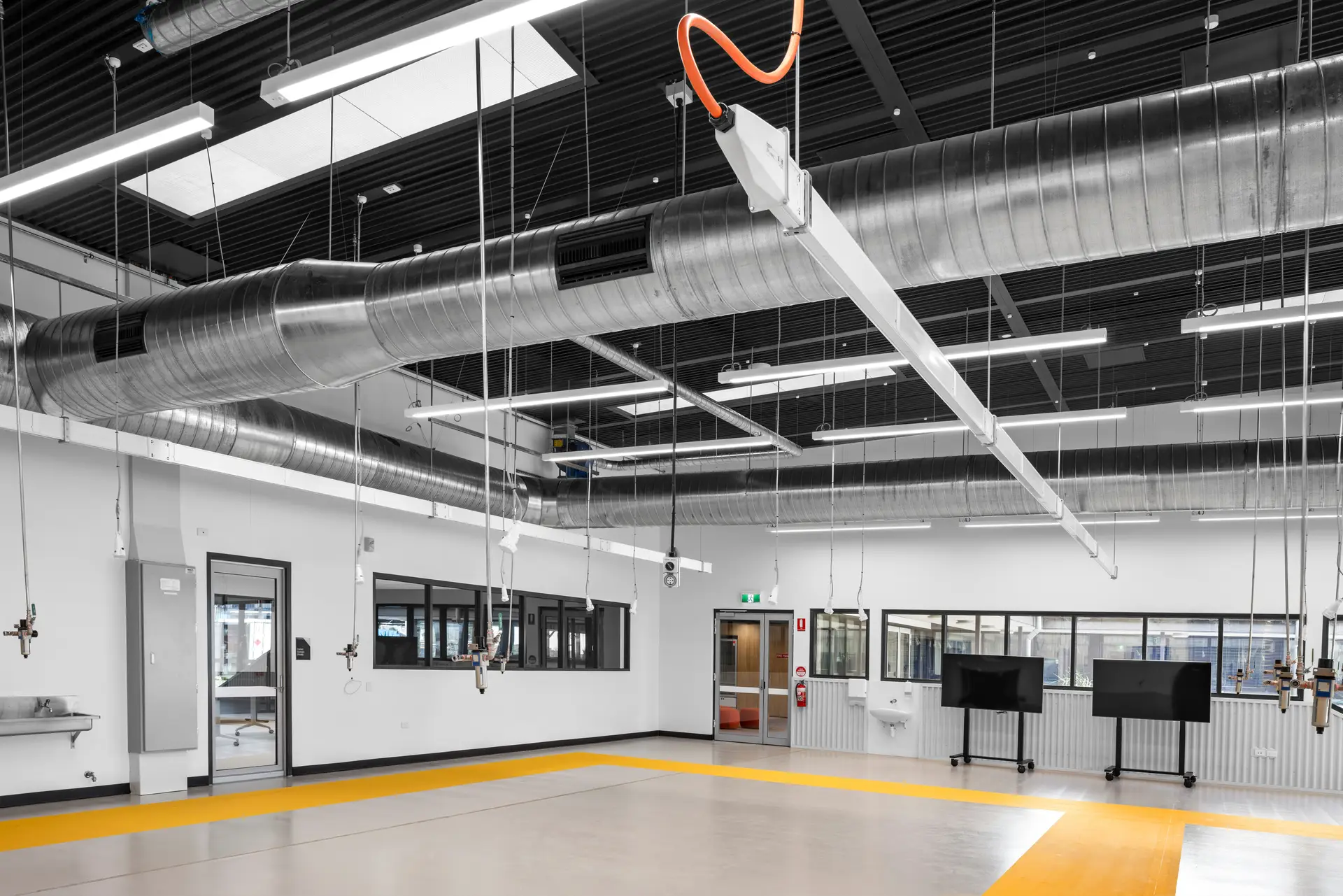 The design for the Hydrogen and Renewable Energy Training Facility and Advanced Manufacturing Skills Lab draws from the technologically advanced and sustainable focus of the training provided at the facility. A client driven ambition to target a 5 Green Star ‘Buildings’ rating meant that efficiency and sustainable outcomes were prioritised. This included solar power, energy efficient services, and a thermally and acoustically insulated building envelope.