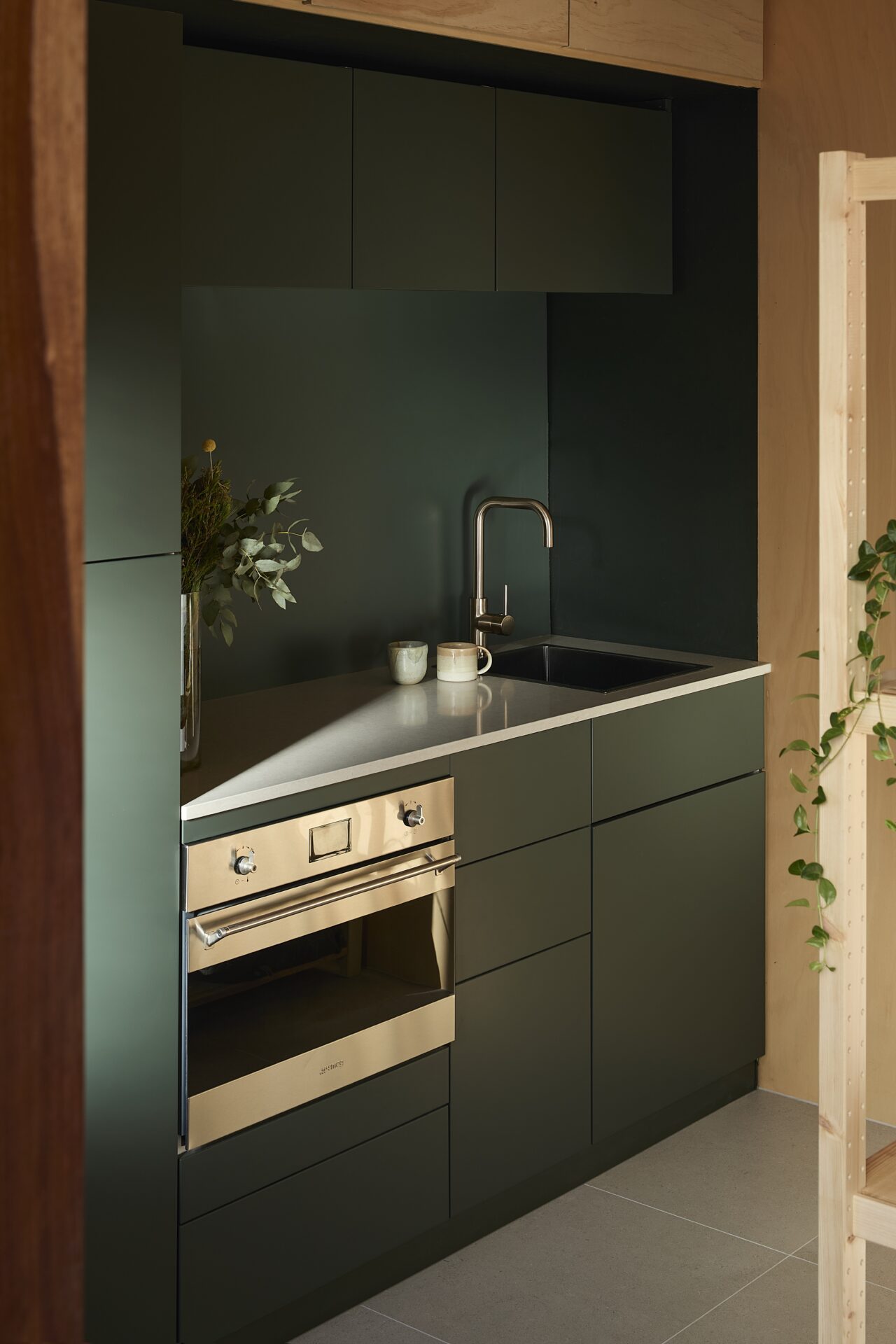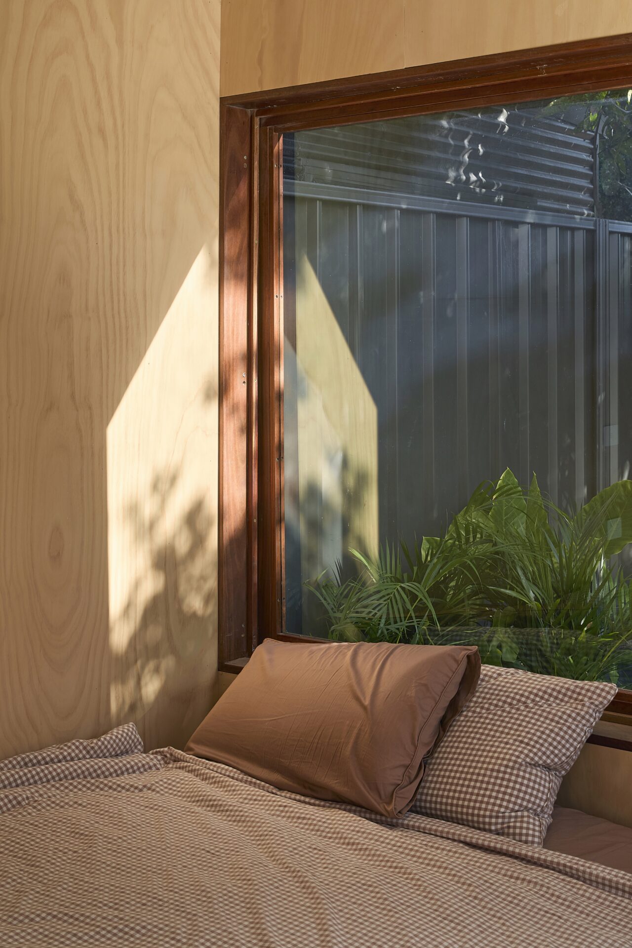 J-Pod is an independent living studio replacing an asbestos shed in a suburban backyard in Newcastle, NSW.