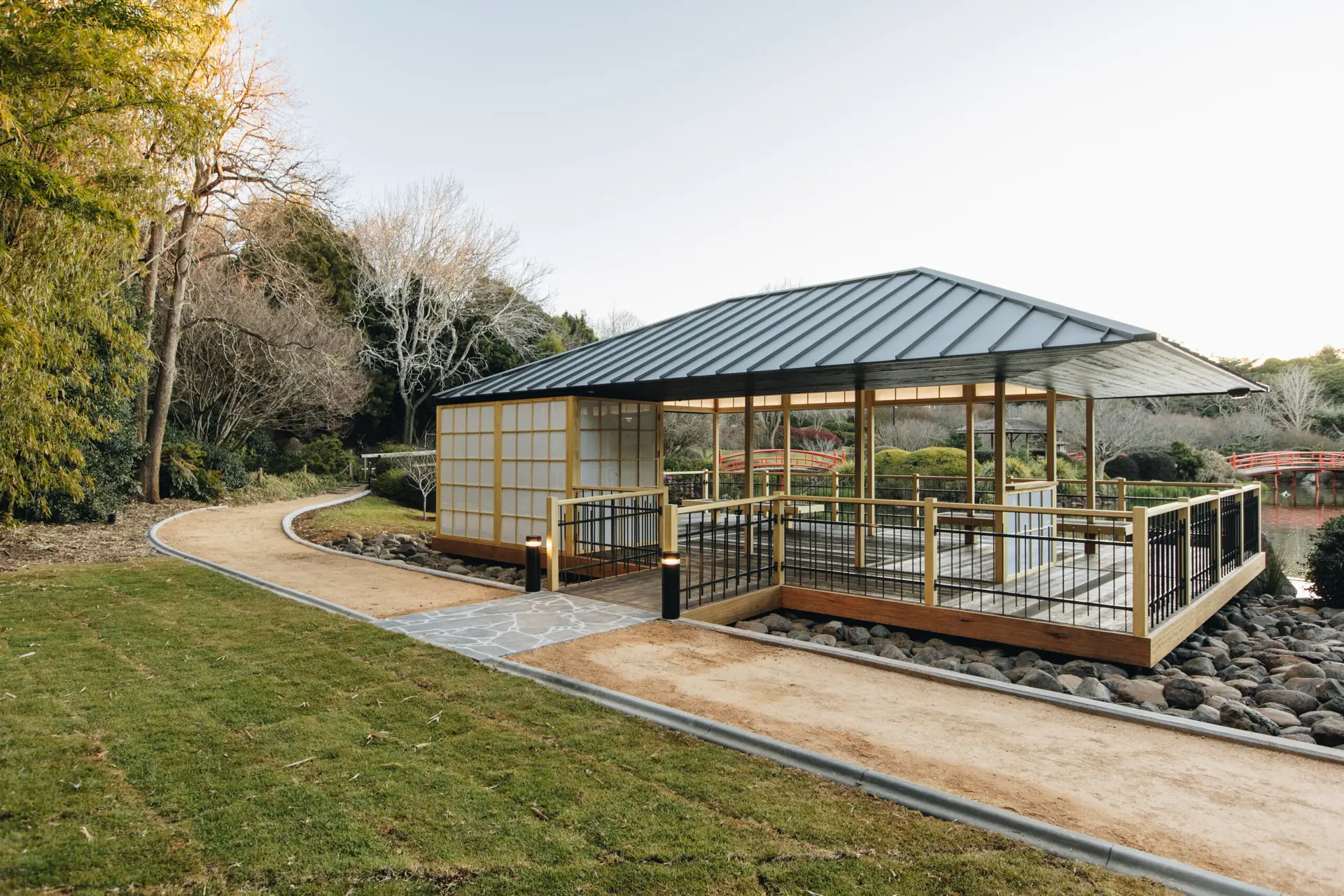 Accessible via a bridge from the existing path, the Pavilion is inclusive for all visitors. Visitors can enjoy the tranquil sounds of swaying bamboo and trickling water while observing native plants and animals. It offers a unique experience with each visit, reflecting the changing seasons and the beauty of the surrounding gardens.