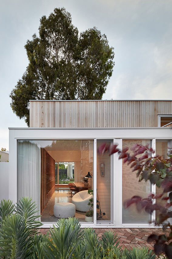 Favourite features include the study with glass at both ends, the long back veranda allowing us to easily entertain, the transition from old to new, the garage disguised as another living space. I could go on. I love looking into each part of our house from the back yard and admiring how functional and how beautiful each room is.