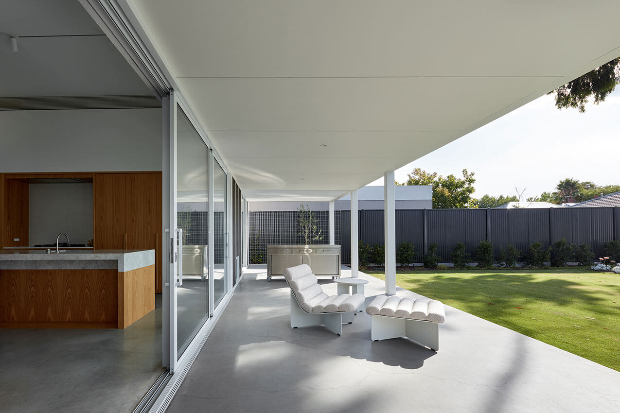 Governed by a pursuit of lightness, each structure is supported by a delicate skeletal frame. The detailing is executed within the confines of 150mm framing sections, innovatively addressing drainage complexities.