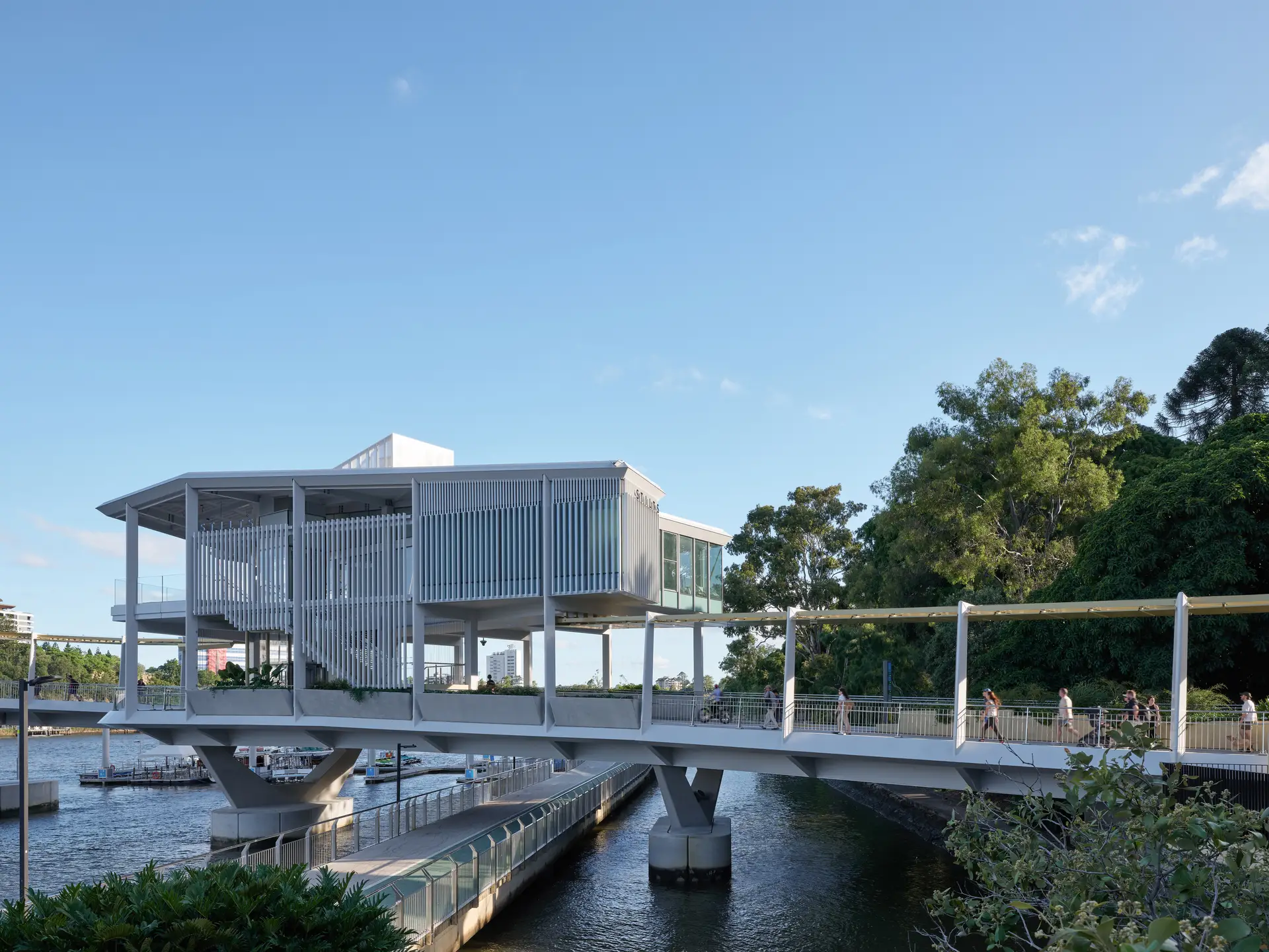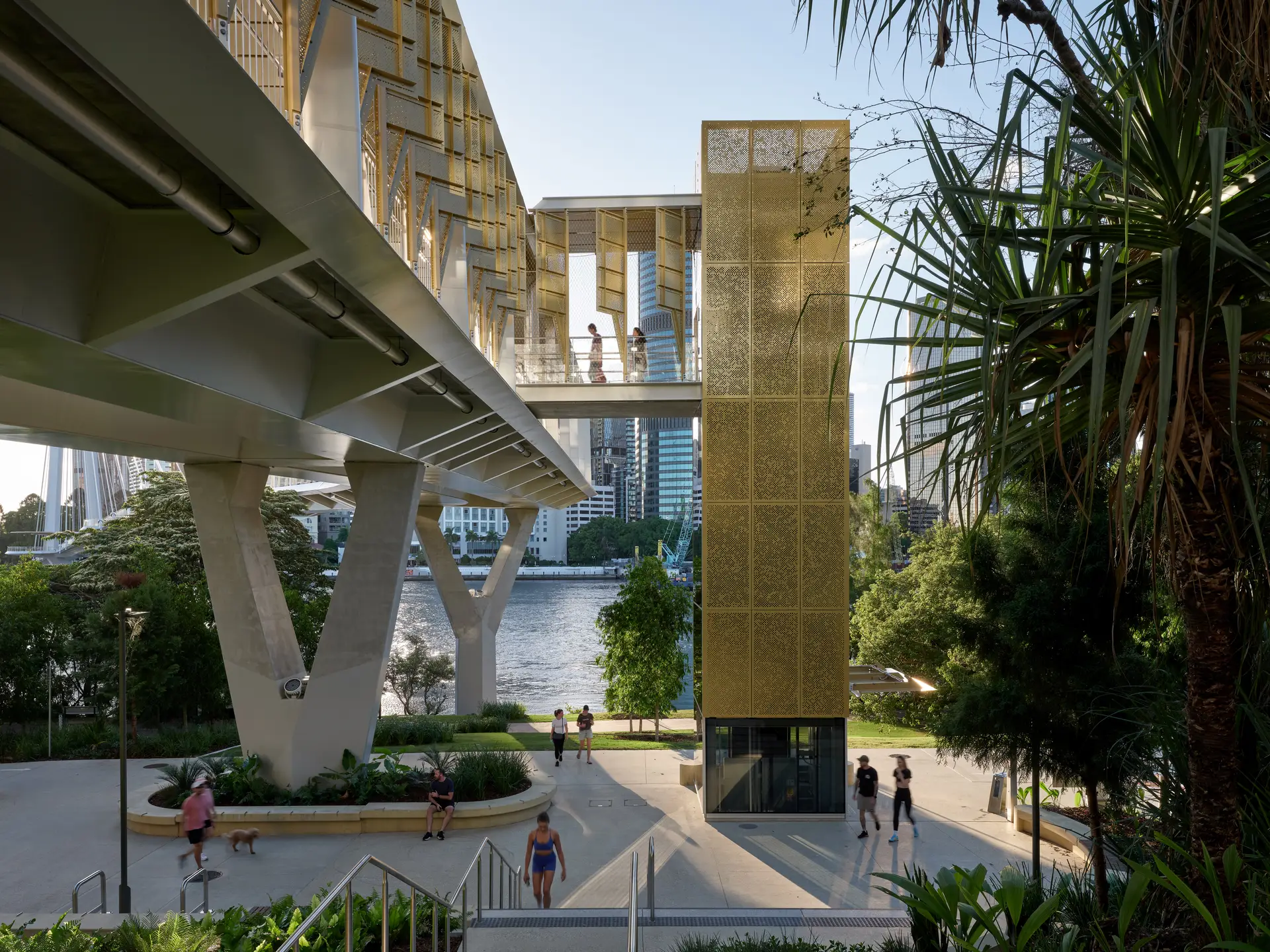 Driven by a strong sustainability agenda, the bridge incorporates solar panels, shaded viewing platforms, and green spaces, reinforcing Brisbane City Council’s commitment to environmentally responsible urban design. The integration of riverside dining venues, including a restaurant, bar, and café elevates the bridge beyond a transit corridor, creating a vibrant social destination for tourists and locals alike.