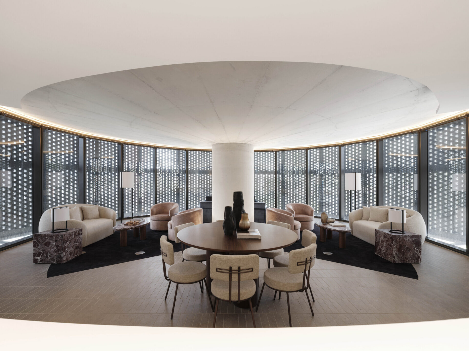 Lacebark is a sculptural gateway building for the Norwest Quarter precinct in Sydney’s Hills Shire, forming part of a bold masterplan transforming 3.8 hectares into a carbon neutral neighbourhood. Drawing on the site’s history as a brick manufacturing plant, the building is expressed as two slender, offset masonry volumes linked by a naturally ventilated central corridor. A study of sun angles was undertaken to inform our response and generated a form where angled solid walls and corresponding glass walls are orientated to allow the winter sun into the living spaces, while blocking the summer sun.