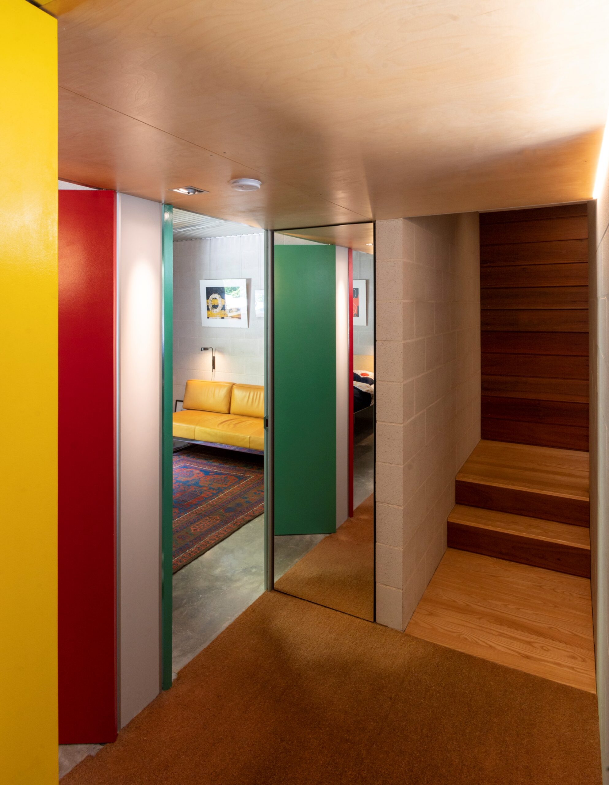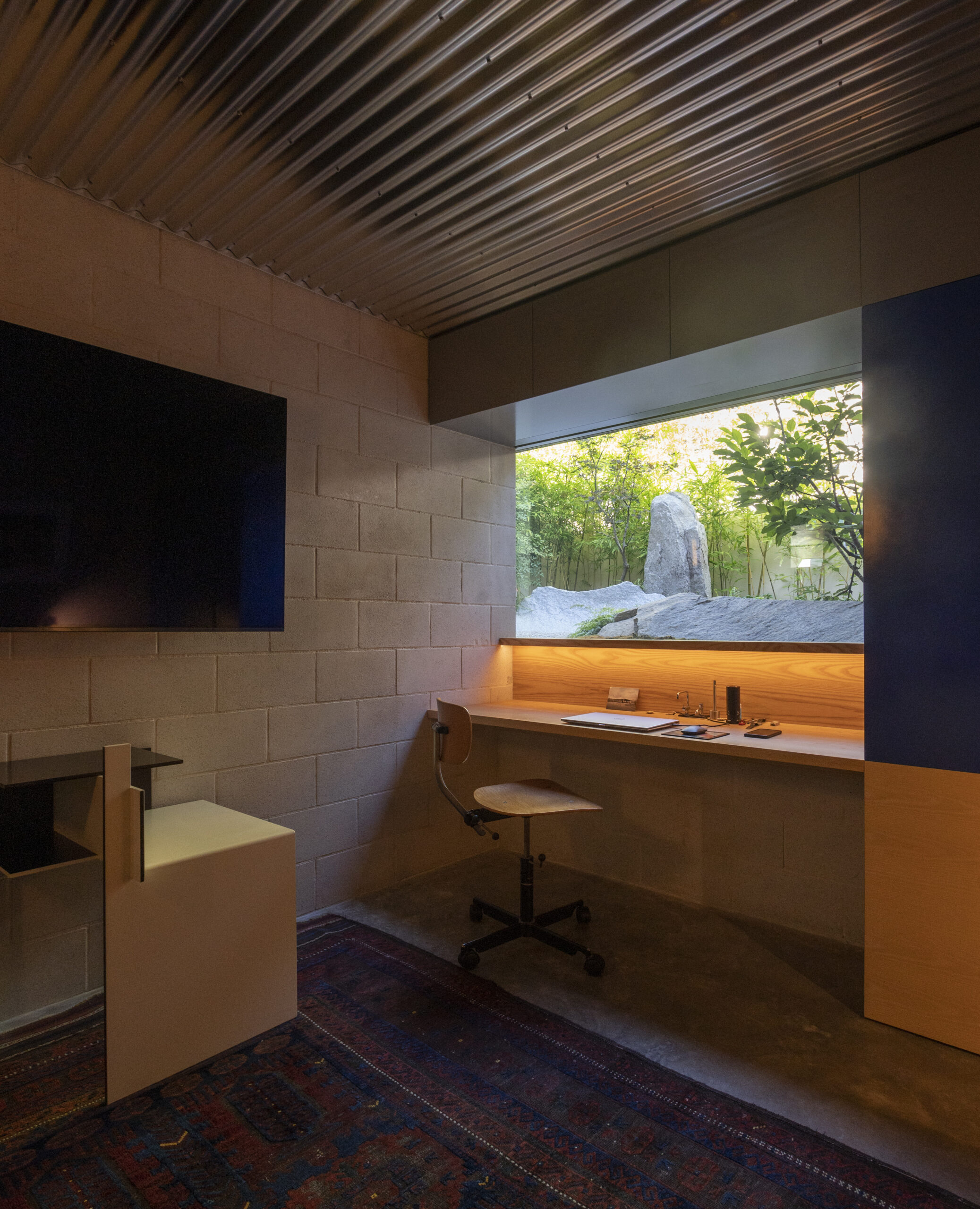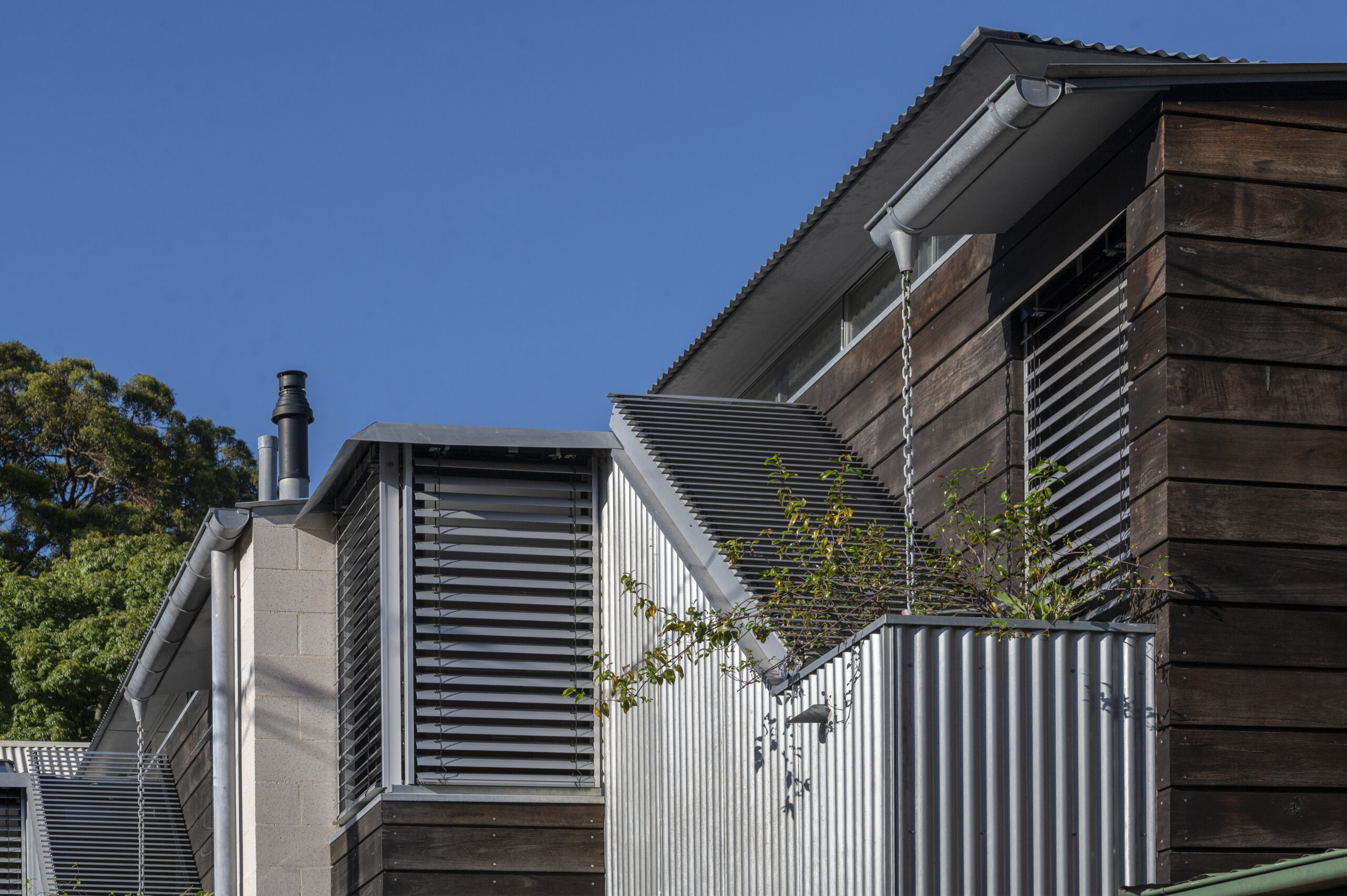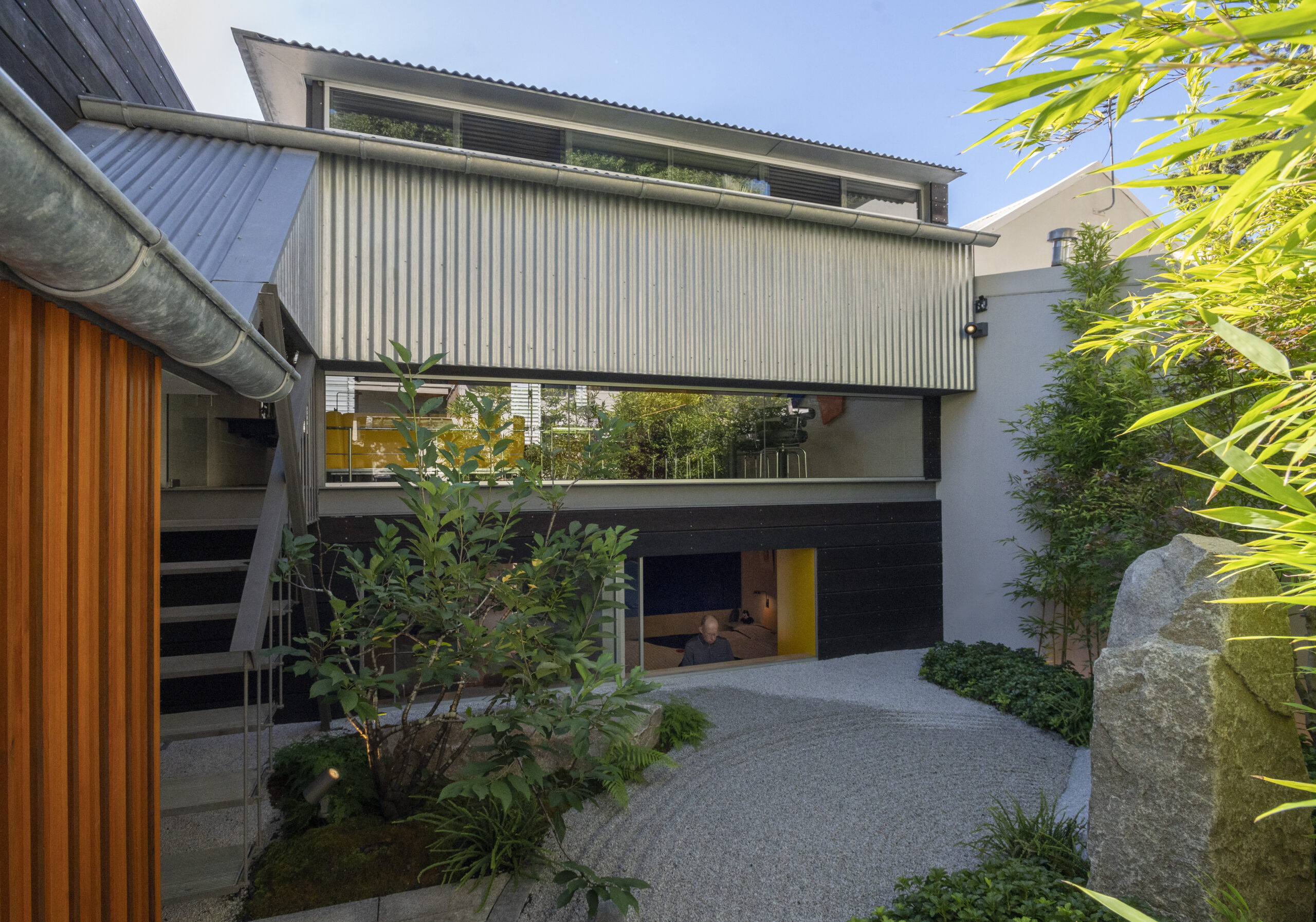 Articulate and expressive, the massing gives the laneway much charm, acting as a wonderful backdrop to street activities while, inside, the Zen Garden, distant tree-tops and the sky are ever-present, streaks of sunlight enlivening the living area throughout the day.