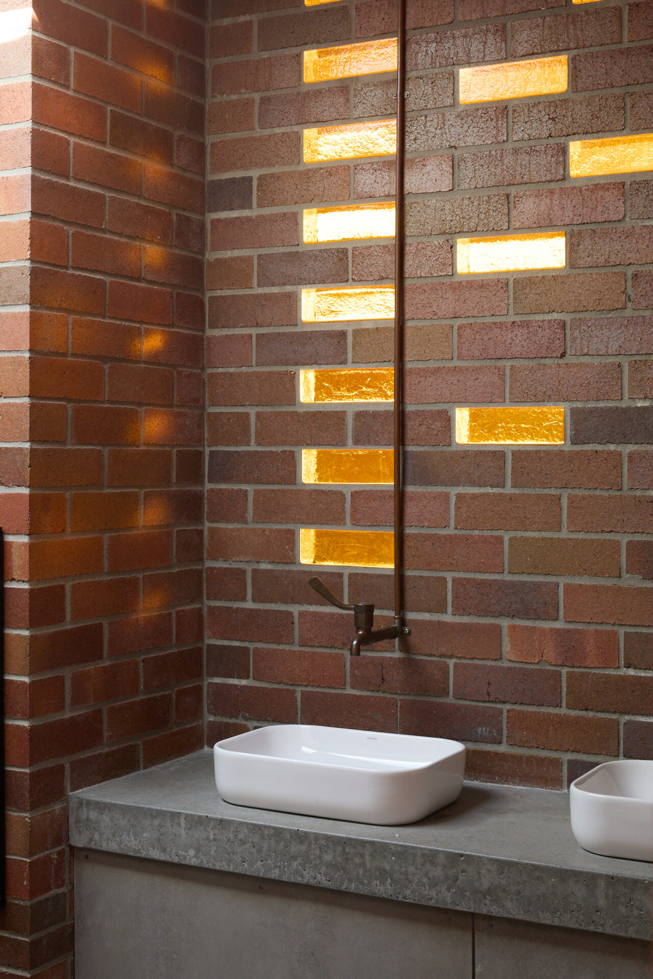 Conceived as both utility and artwork, the block is a brick ‘sculpture’ set within the gardens. Its form reinterprets the heritage detailing of the surrounding buildings – arches inverted, corbels stretched, chimneys distorted – creating a playful rhythm that is both familiar and surprising. Locally sourced bricks from Taree’s Lincoln Brickworks, crafted by local trades, embed the project in community and celebrate local craft.