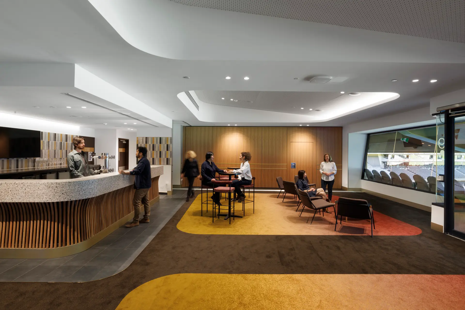 Conceptually, the interiors drew upon the stadium’s physical and emotional connection to Melbourne, fostering a sense of community ownership. “Our People, Our Place; Made in Melbourne” was the guiding concept for the design.